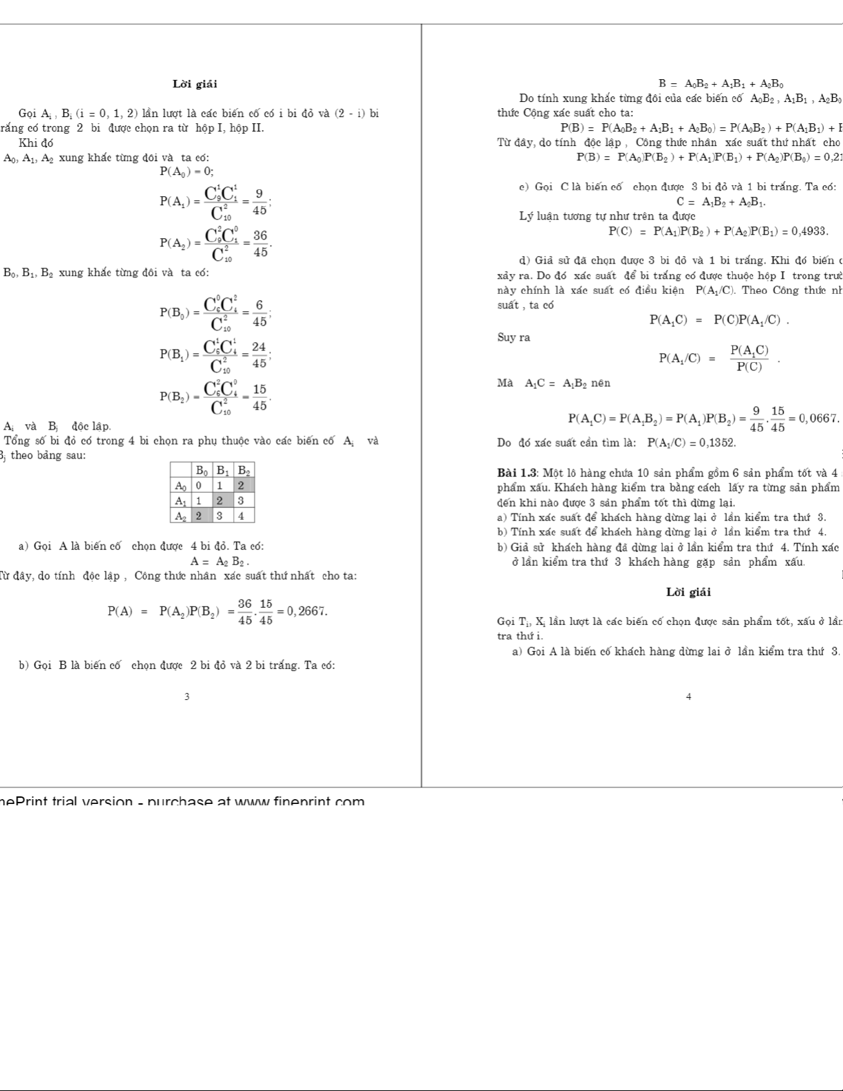 Giải bài tập môn Xác suất thống kê| Trường Đại học NgoạiThương. Tài liệu giúp bạn tham khảo, ôn tập và đạt kết quả cao. Mời đọc đón xem!