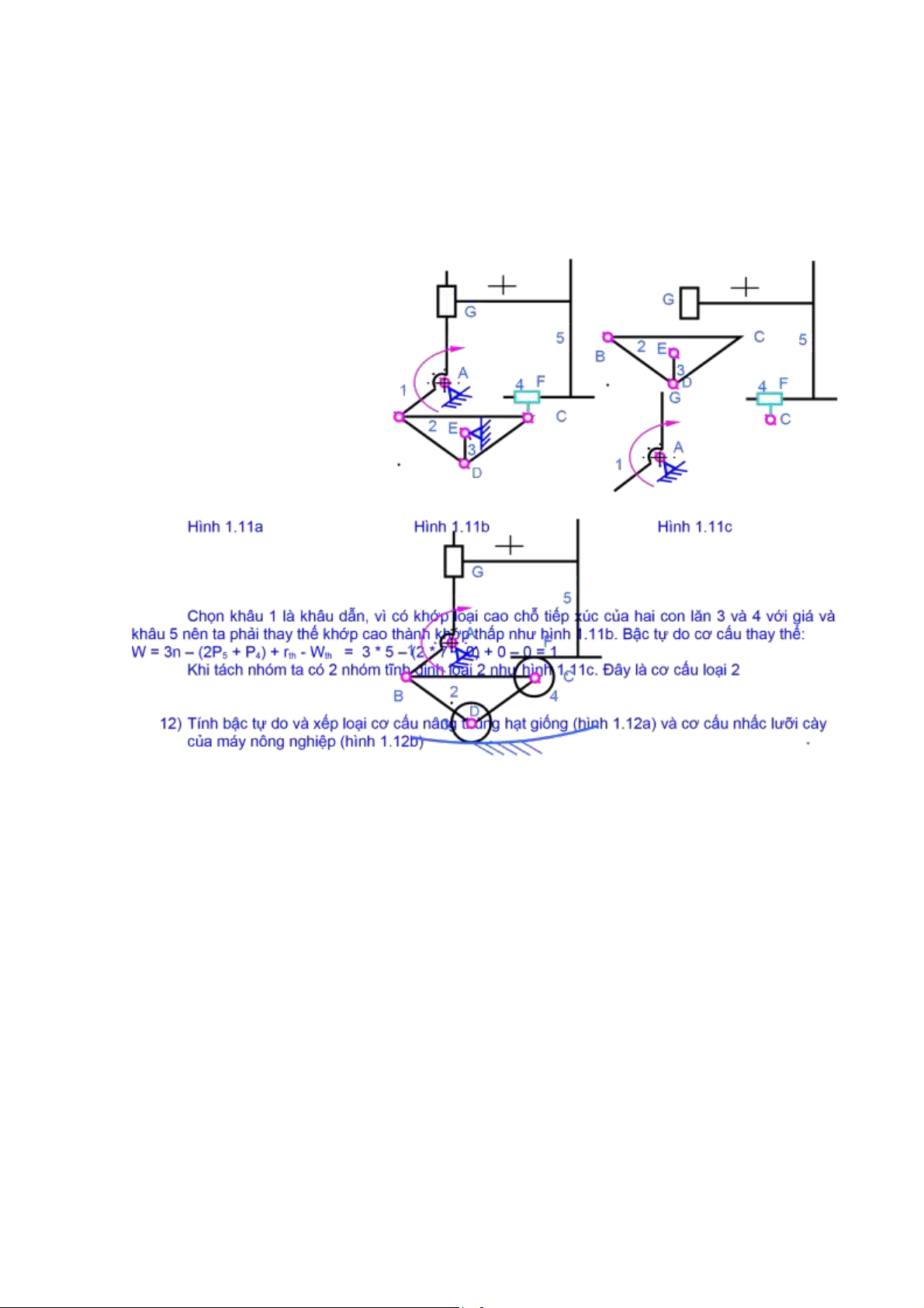 11) Tính bậc tự do và xếp loại cơ cấu chuyển động theo quỹ đạo cho trước (hình 1.11a) B