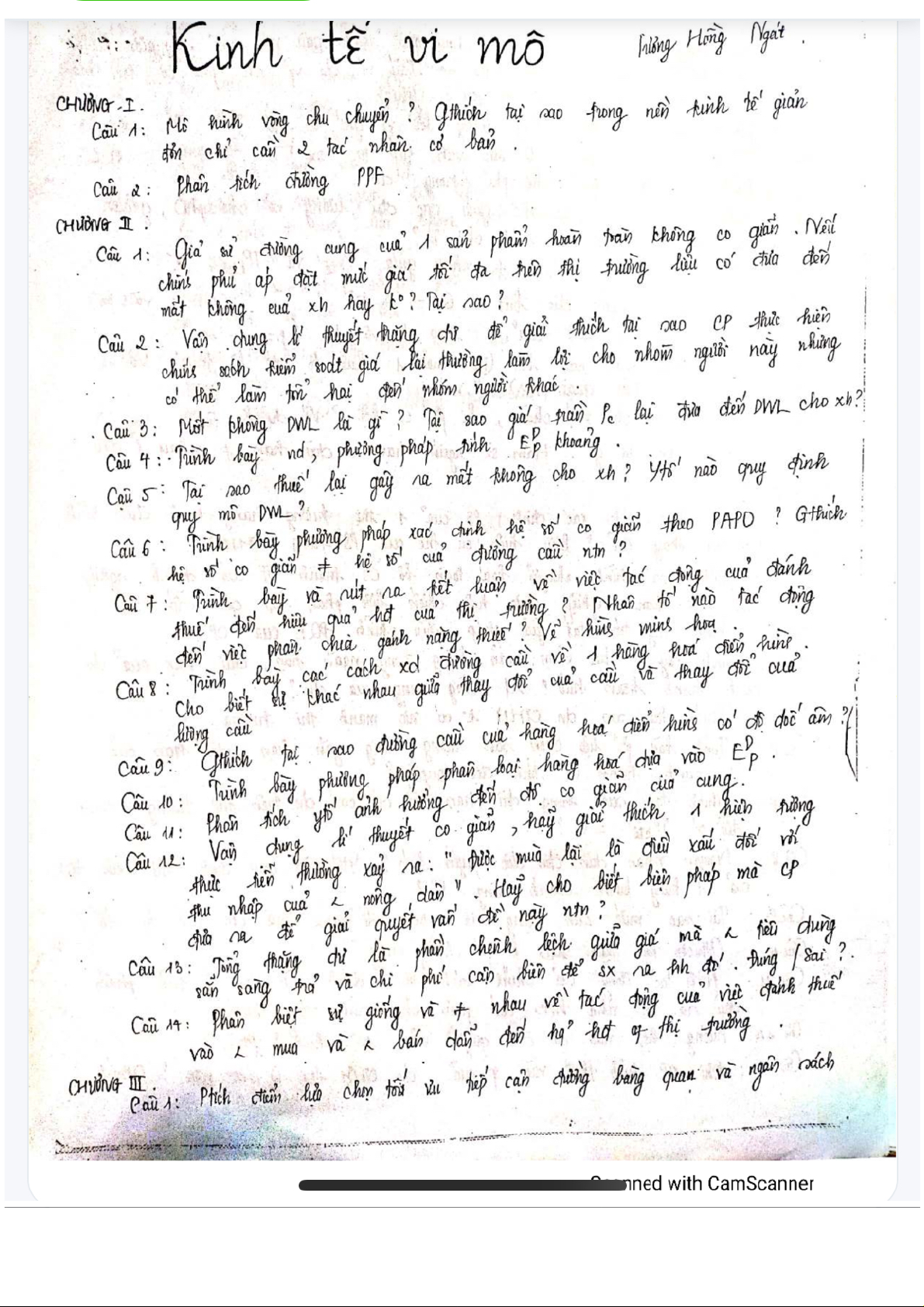Câu Hỏi Ôn Tập Chương 5 - 8 môn Kinh tế vi mô 1 | Học viện Tài chính