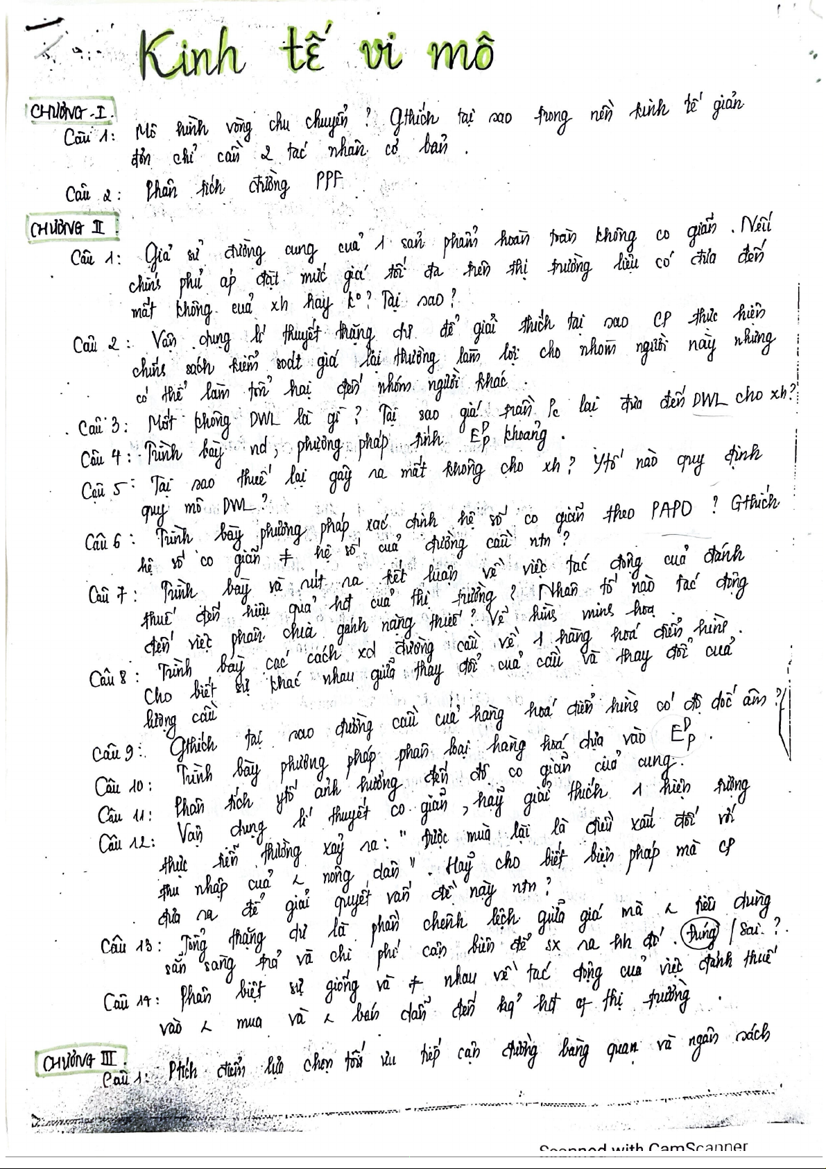 Câu Hỏi Ôn Tập Chương 5 - 8 môn Kinh tế vi mô 1 | Học viện Tài chính