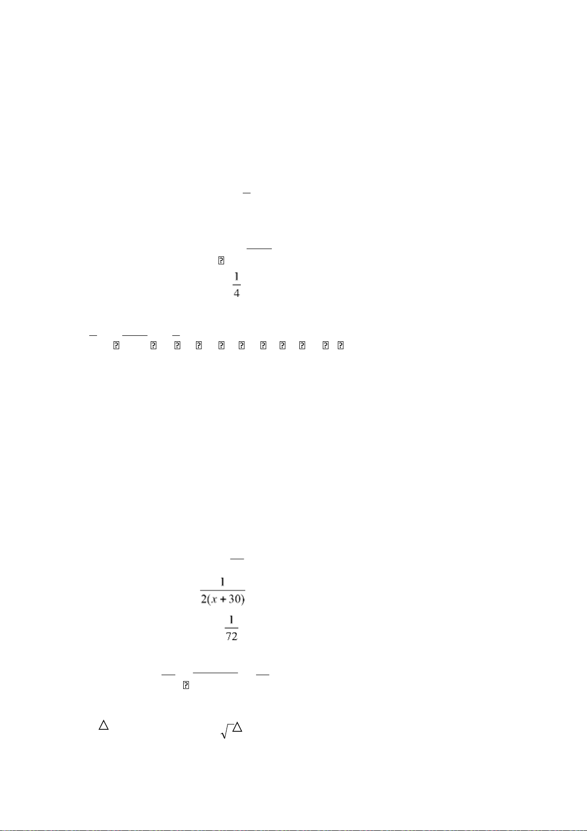Tổng thời gian ca nô đi xuôi dòng và ngược dòng là 4h nên ta có phương trình: 30 30 x 4 x 4 + = 4 x2 – 15x – 16 = 0 x1 khoângthoûaÑK)