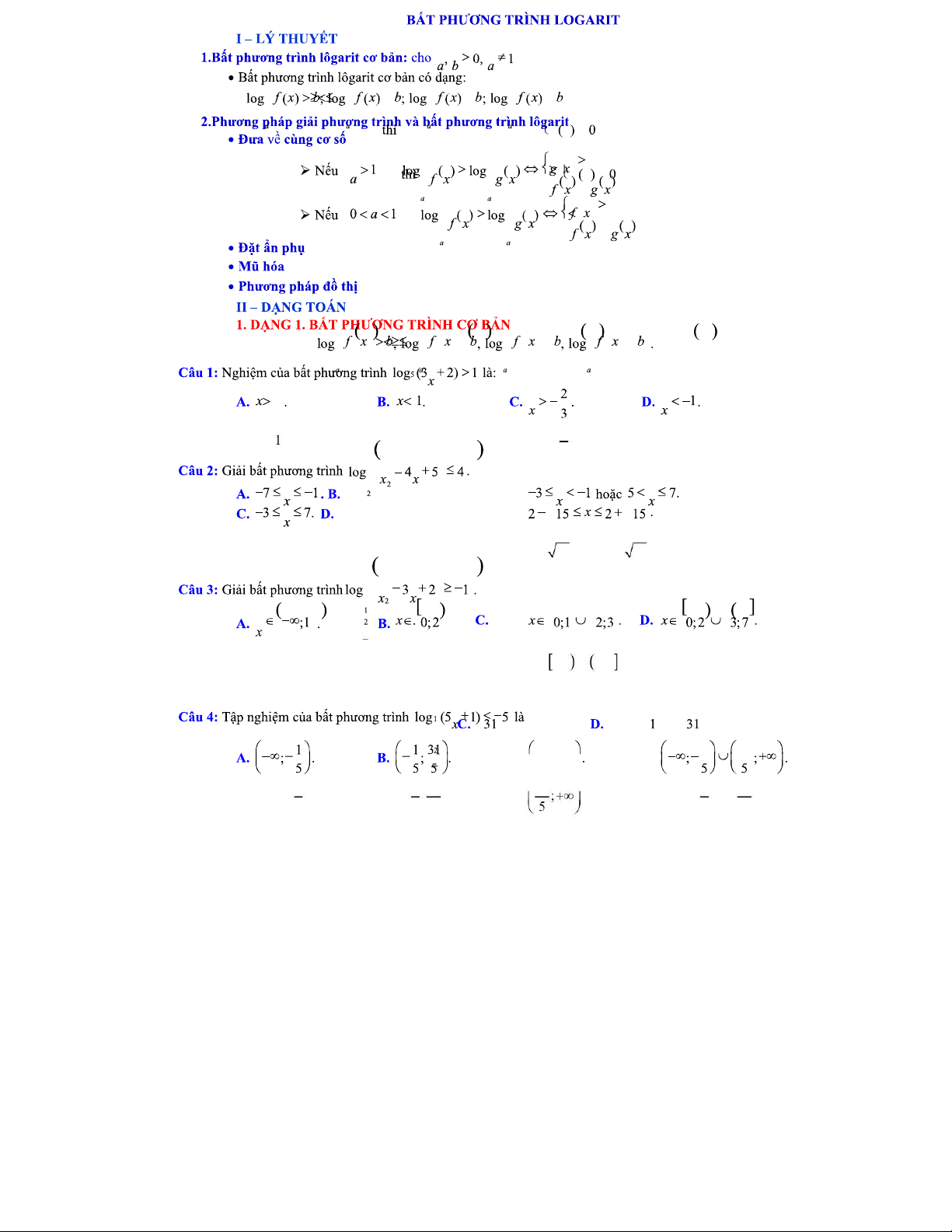 Giải bất phương trình lôgarit cơ bản và các dạng toán liên quan