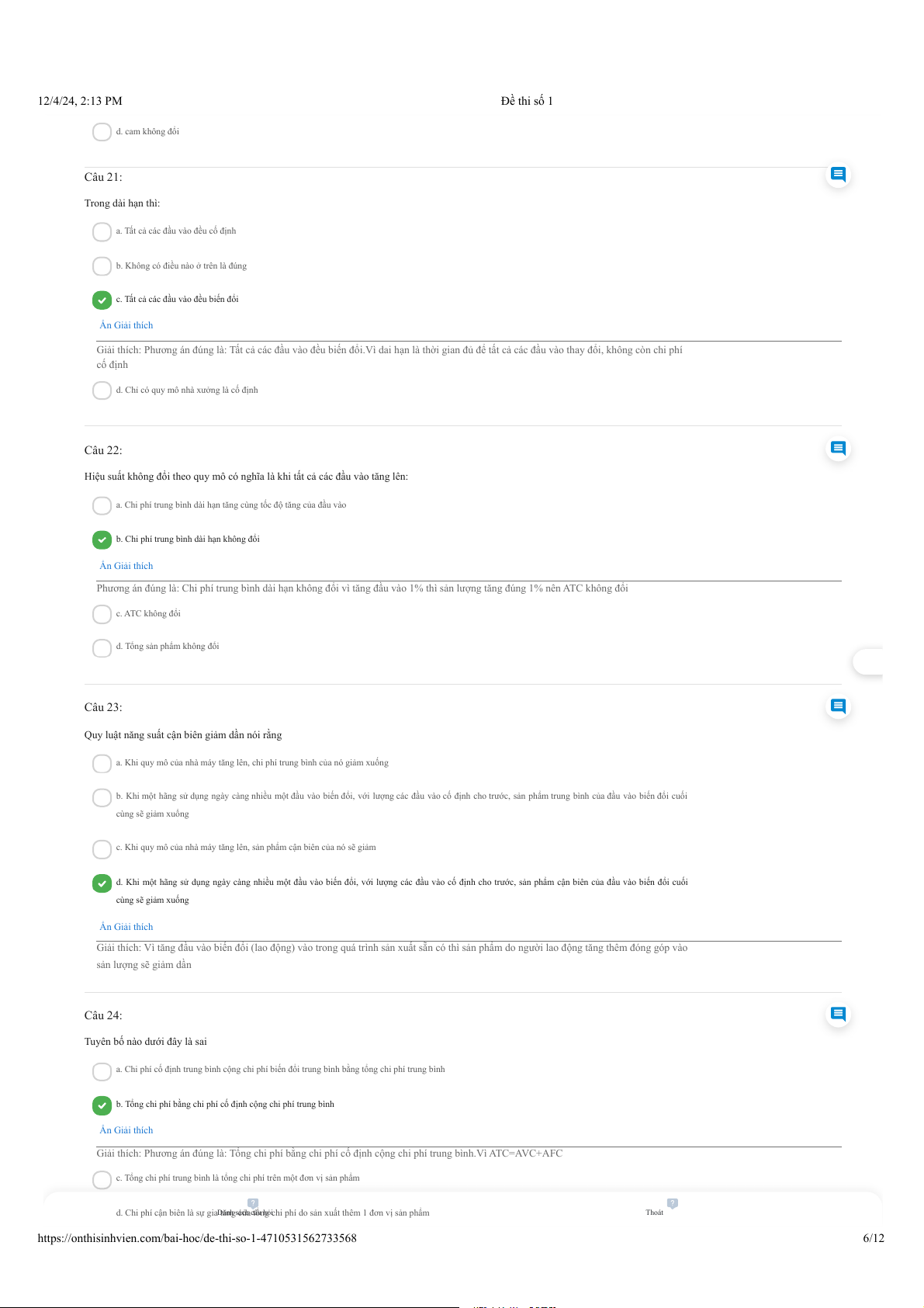 https://onthisinhvien.com/bai-hoc/de-thi-so-1-4710531562733568 5/12 12/4/24, 2:13 PM Đề thi số 1 d. cam không đổi Câu 21: Trong dài hạn thì: