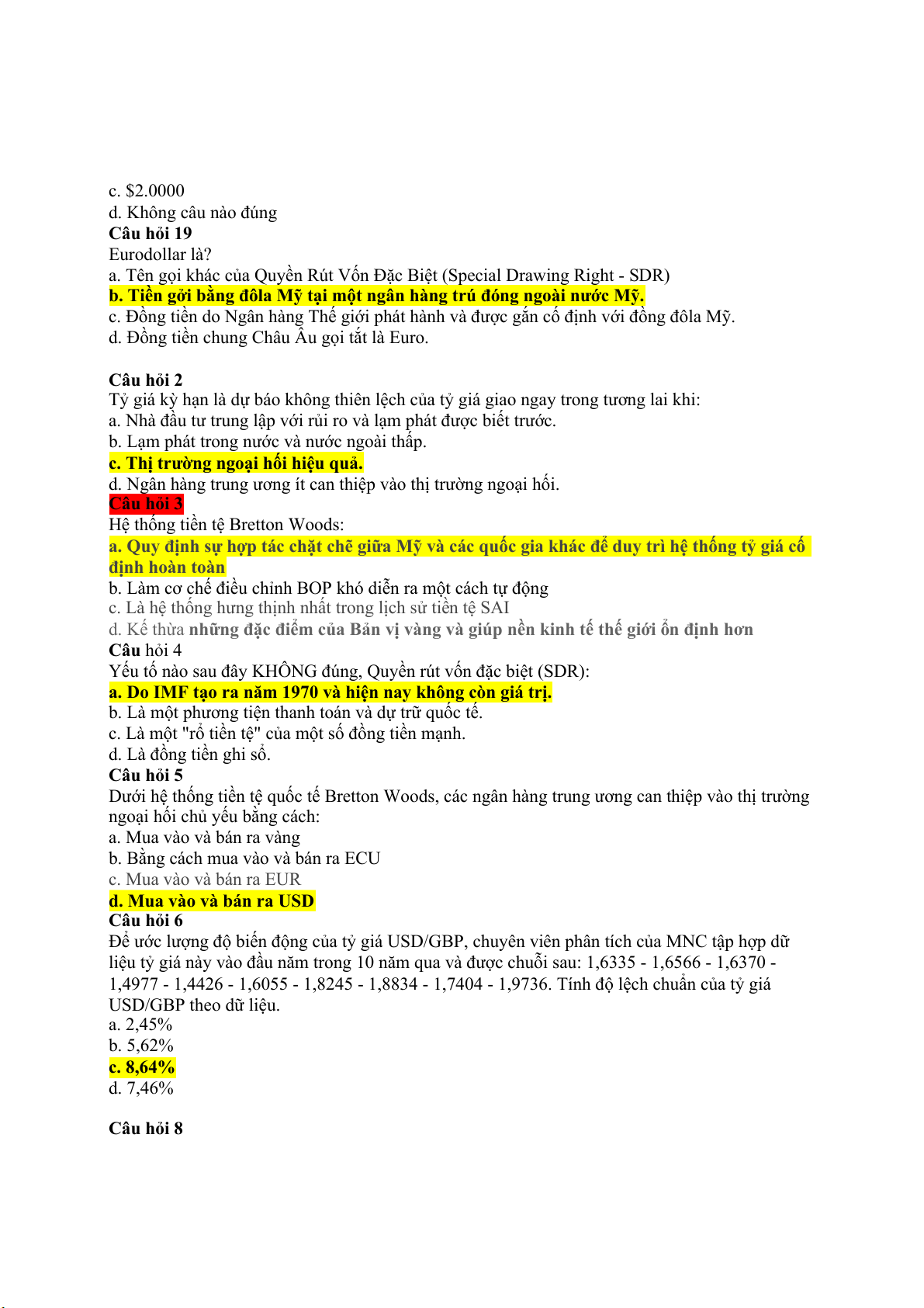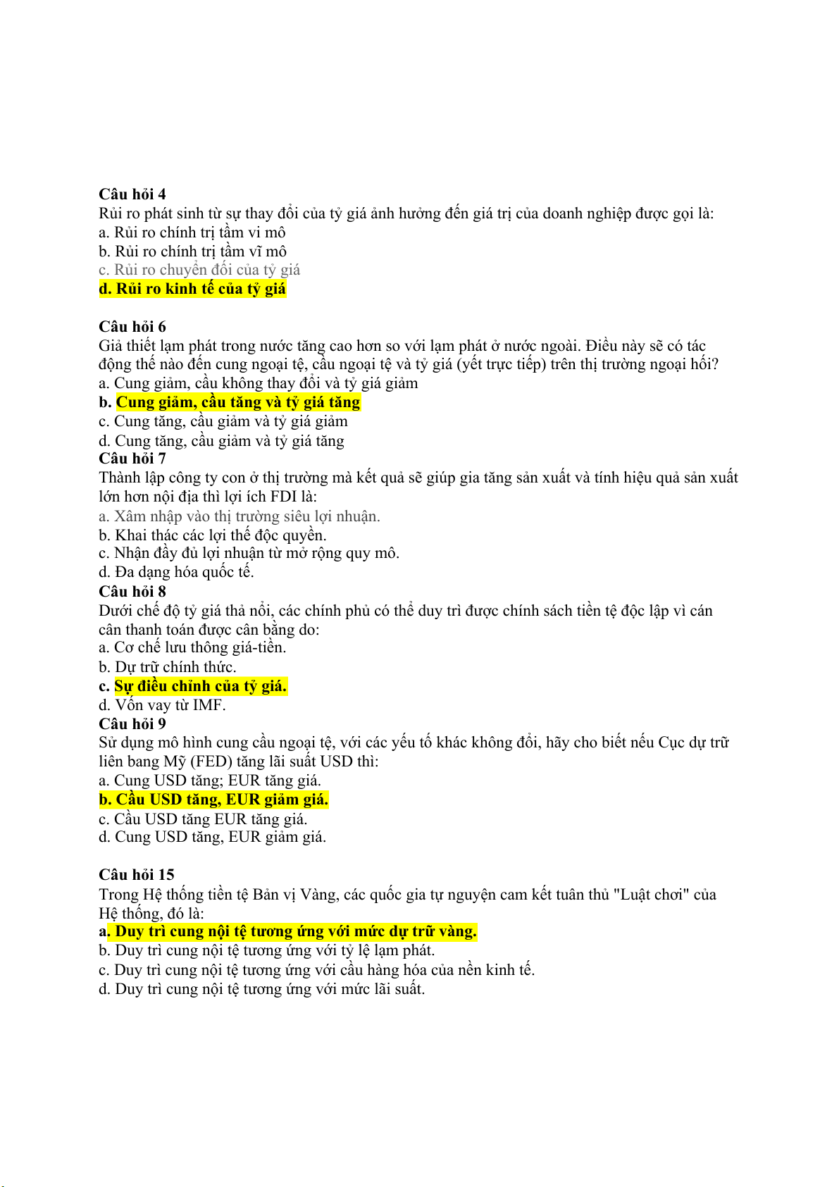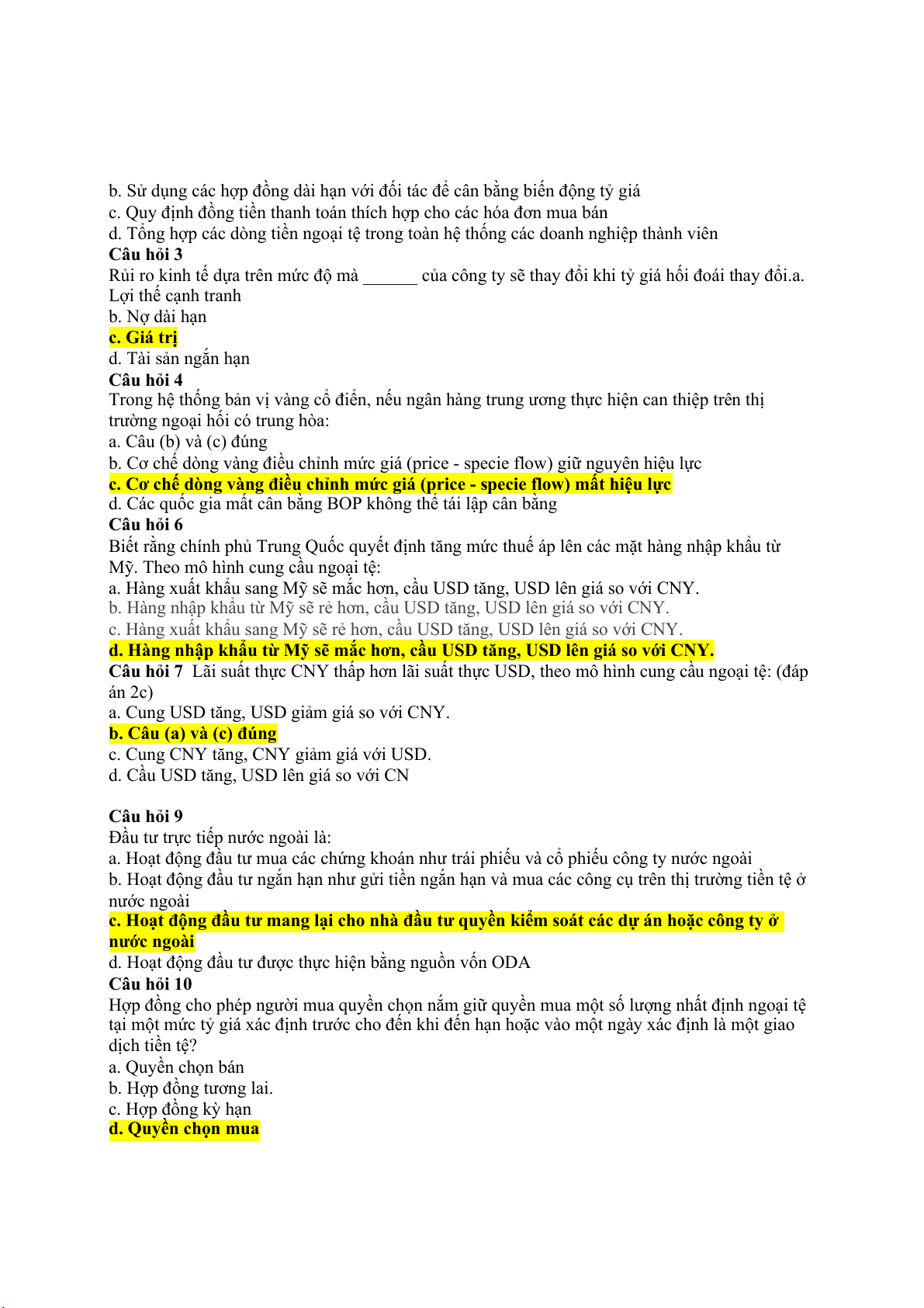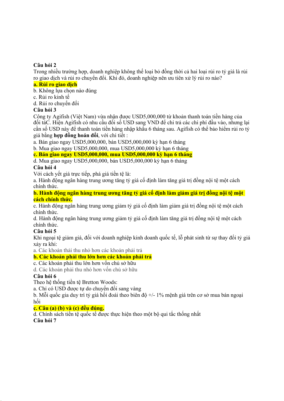d. Rủi ro kinh tế của tỷ giá Câu hỏi 6