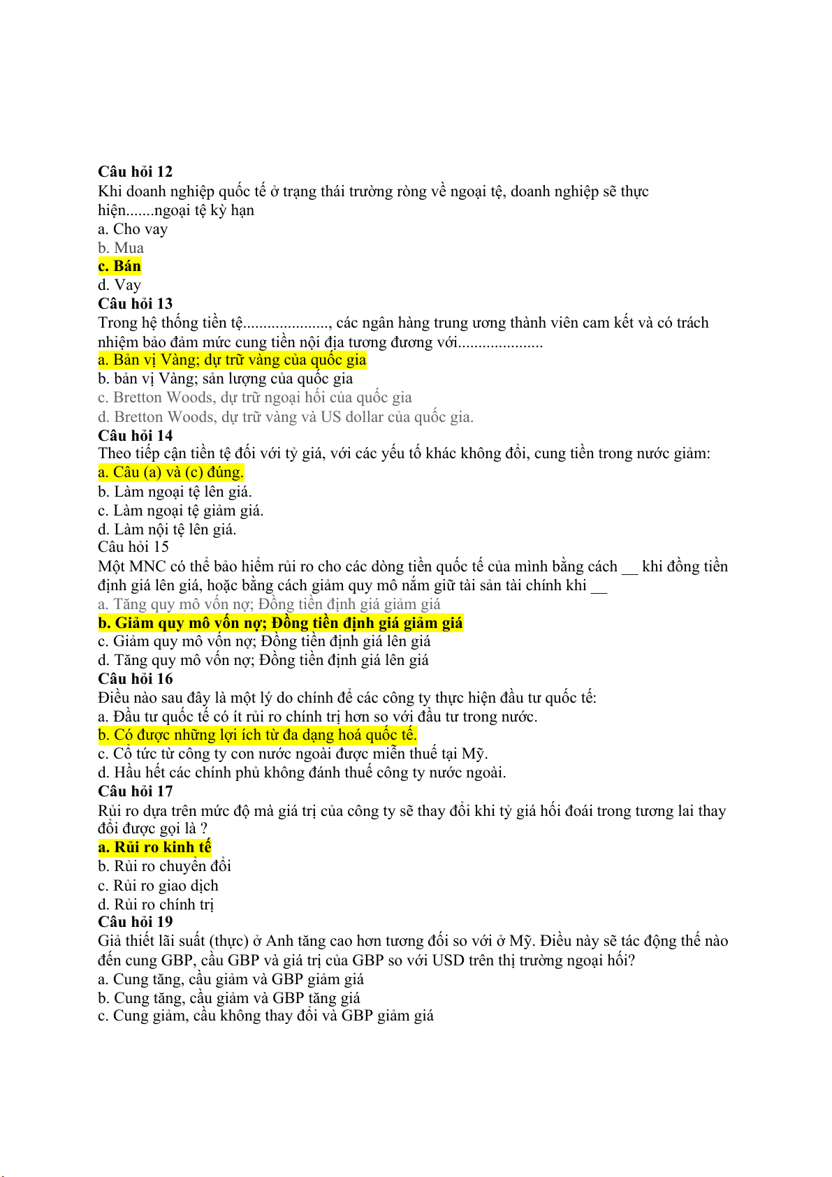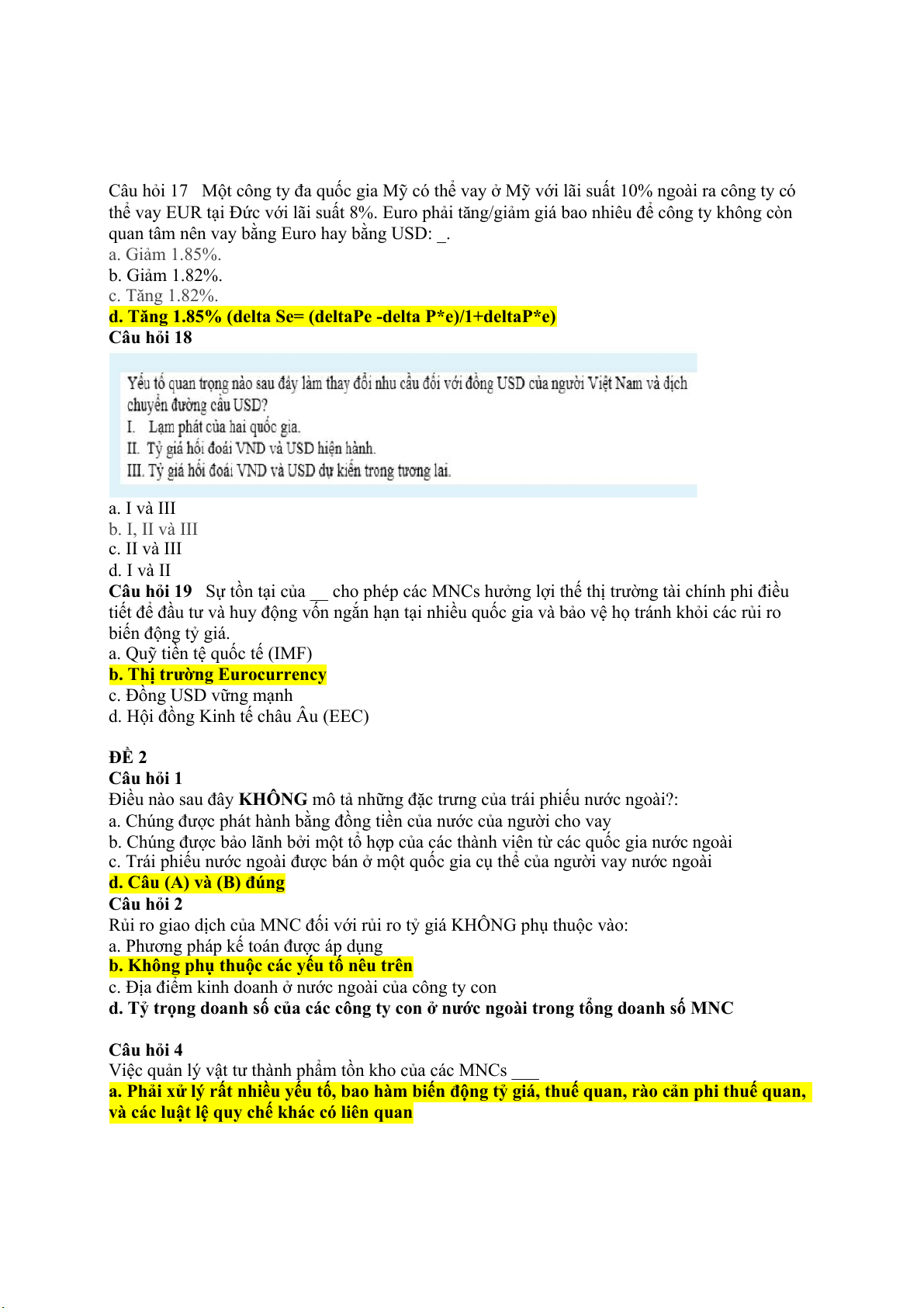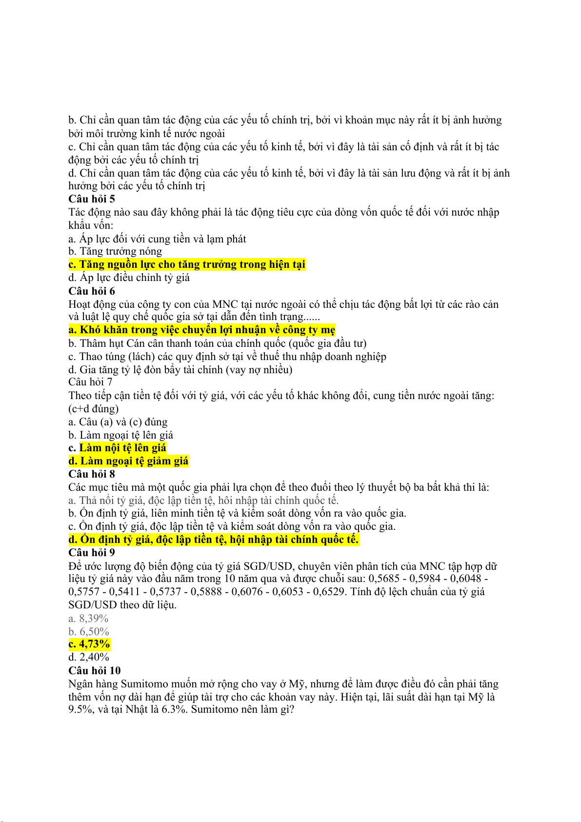 Câu hỏi 17 Một công ty đa quốc gia Mỹ có thể vay ở Mỹ với lãi suất 10% ngoài ra công ty có