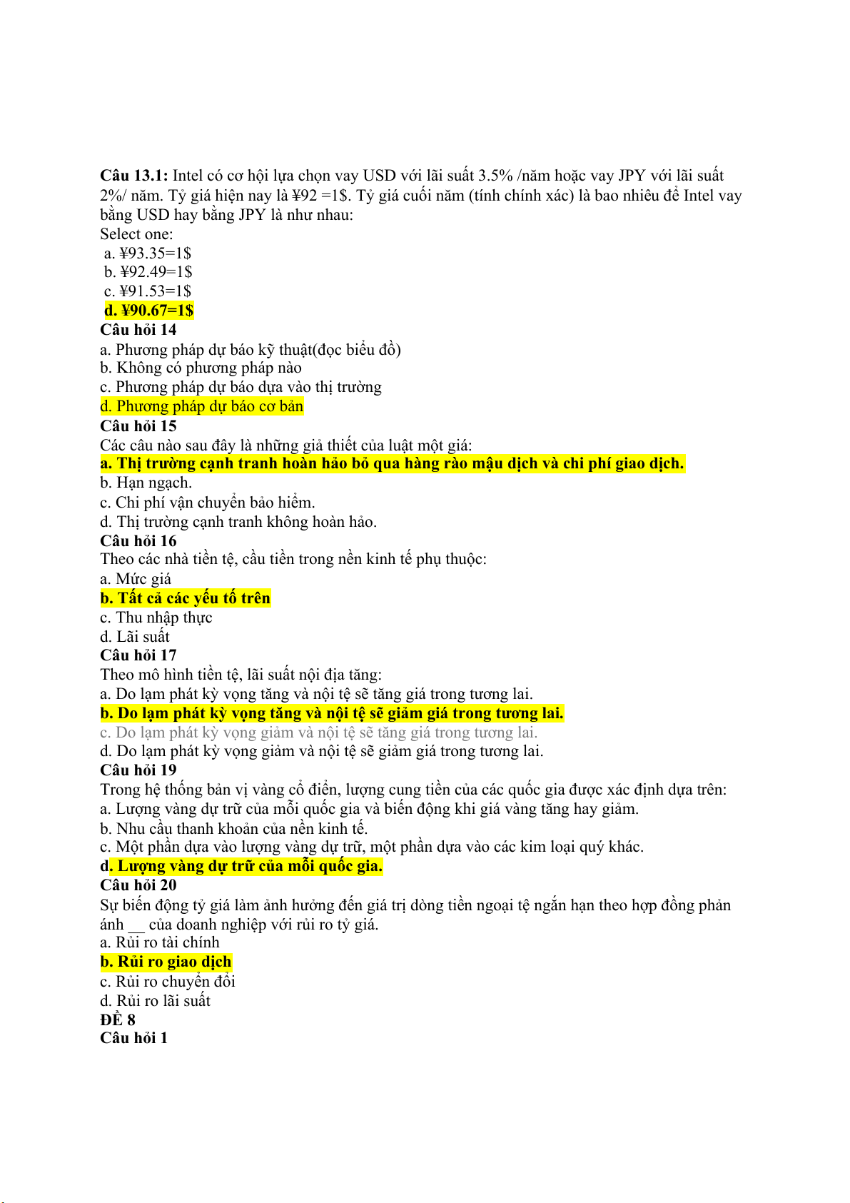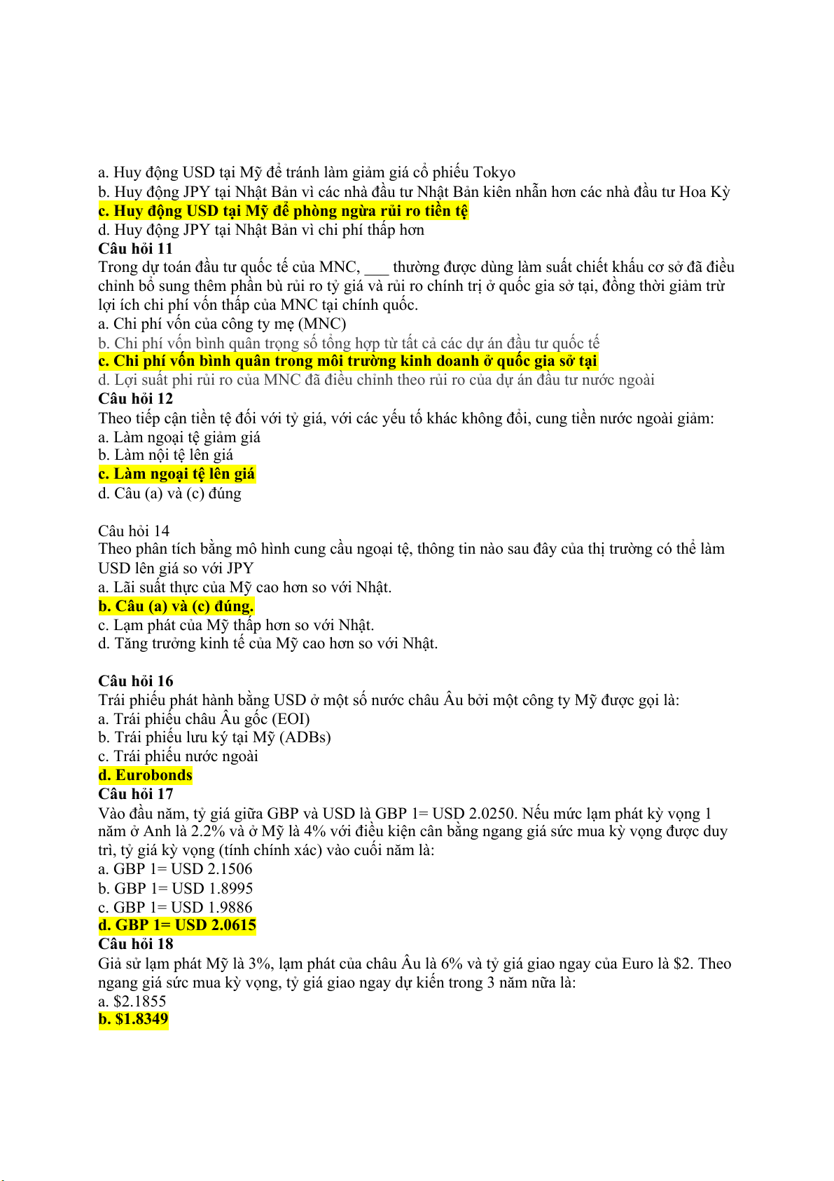 Câu 16: Một MNC - Mỹ có thể vay ở Mỹ với lãi suất 10% ngoài ra công ty có thể vay EUR tại
