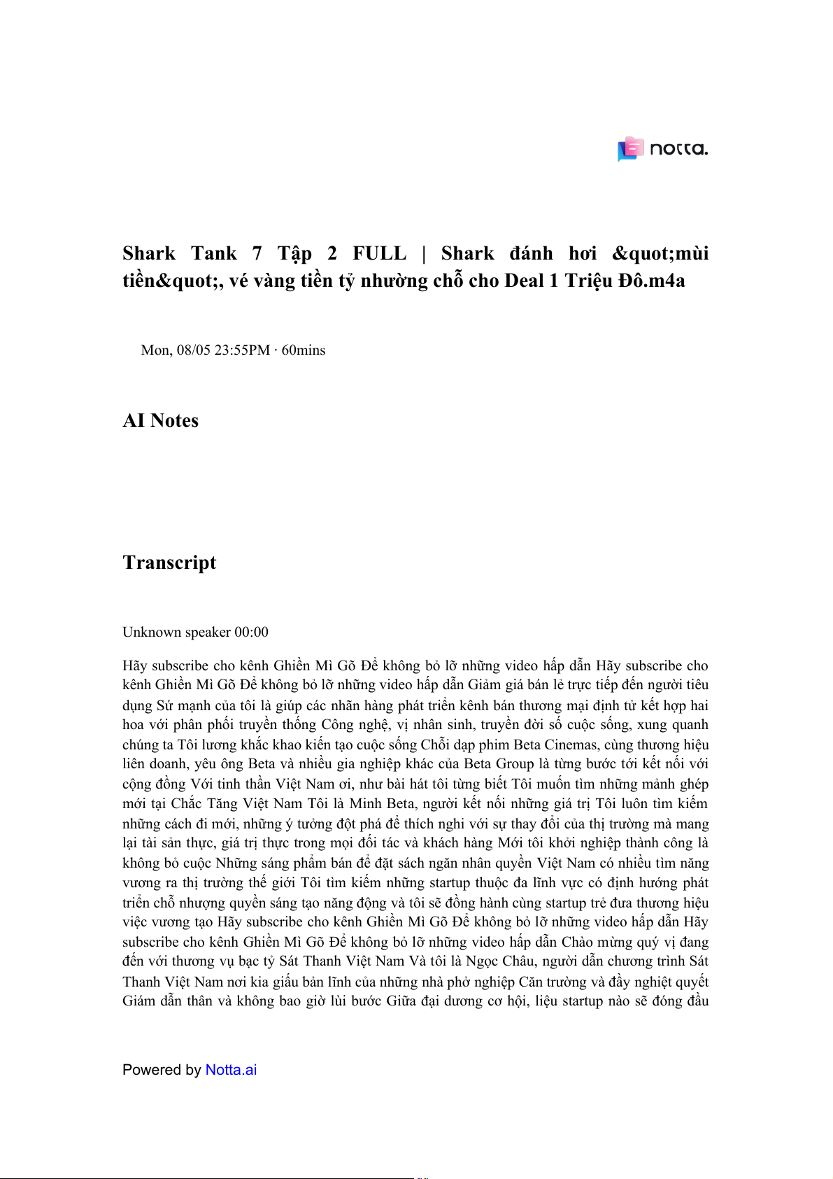 ⏰Mon, 08/05 23:55PM · 60mins AI Notes Transcript Unknown speaker 00:00