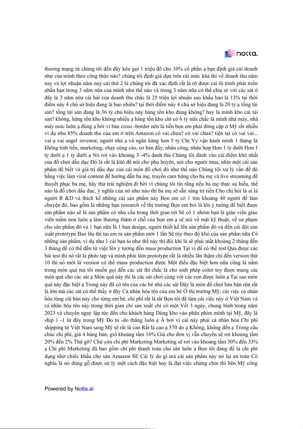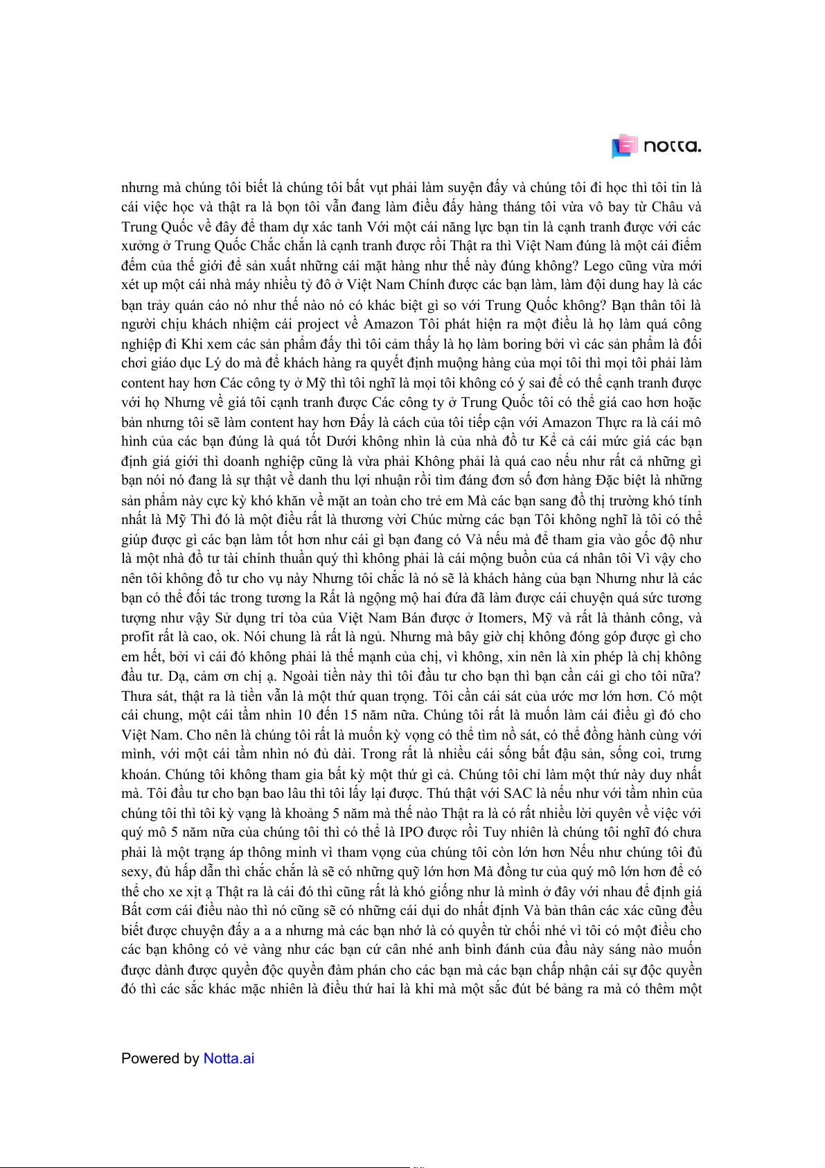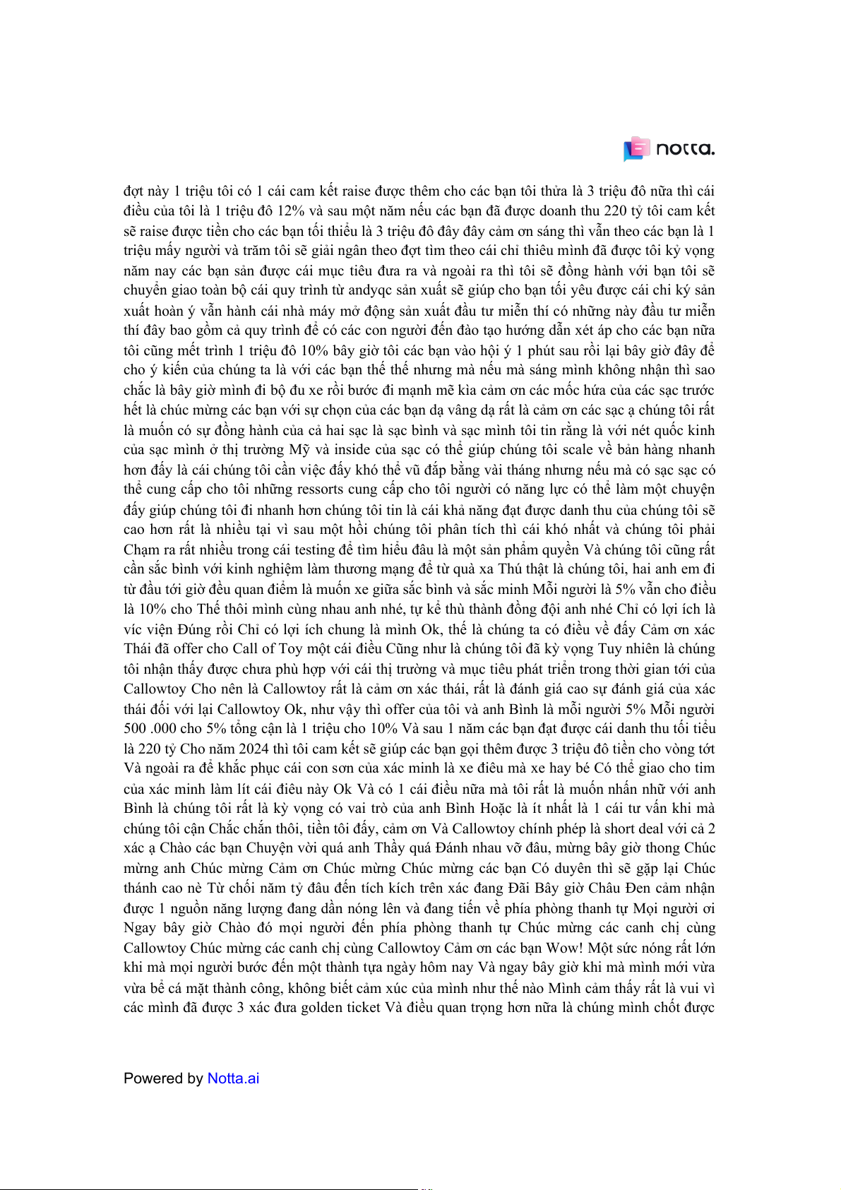 nhiều working capital rất nhiều vốn ngoài cái chuyện là tôi gung cấp tiền cho các bạn trong cái Powered by Notta.ai