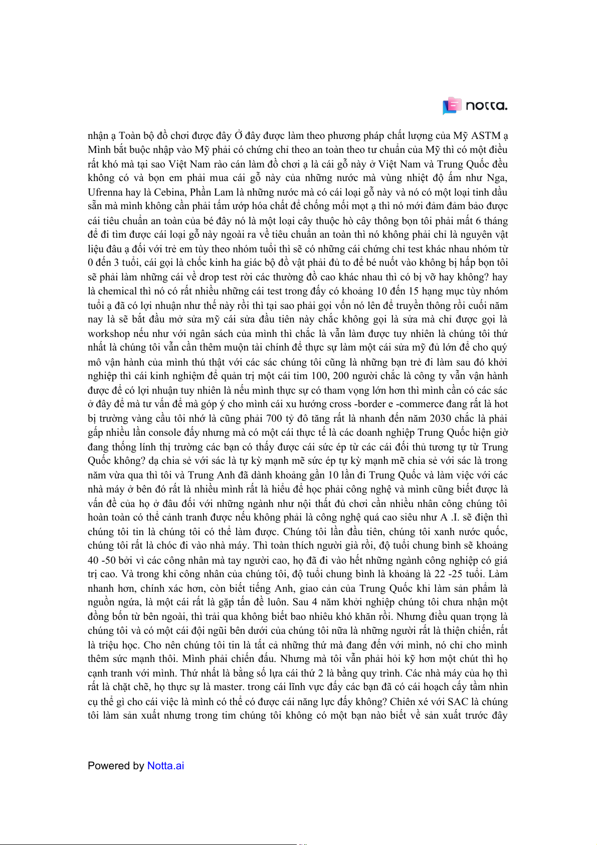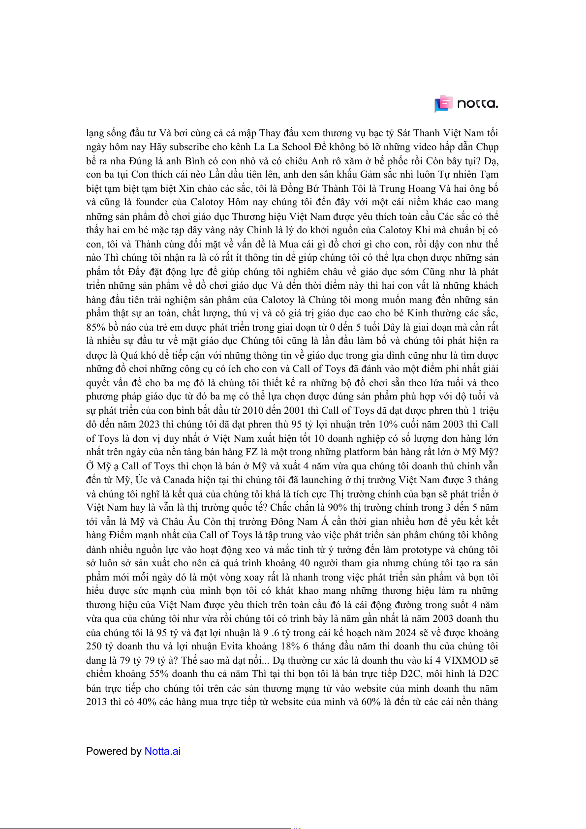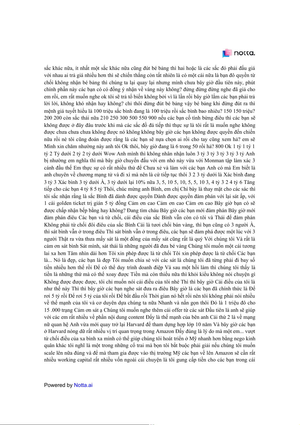 nhiều working capital rất nhiều vốn ngoài cái chuyện là tôi gung cấp tiền cho các bạn trong cái Powered by Notta.ai