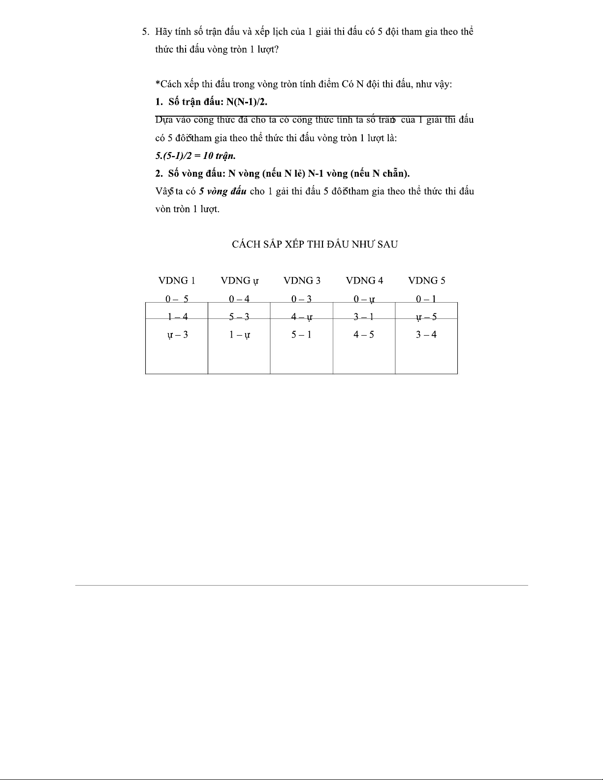 Giải đấu 5 đội: Số trận và Lịch thi đấu vòng tròn 1 lượt