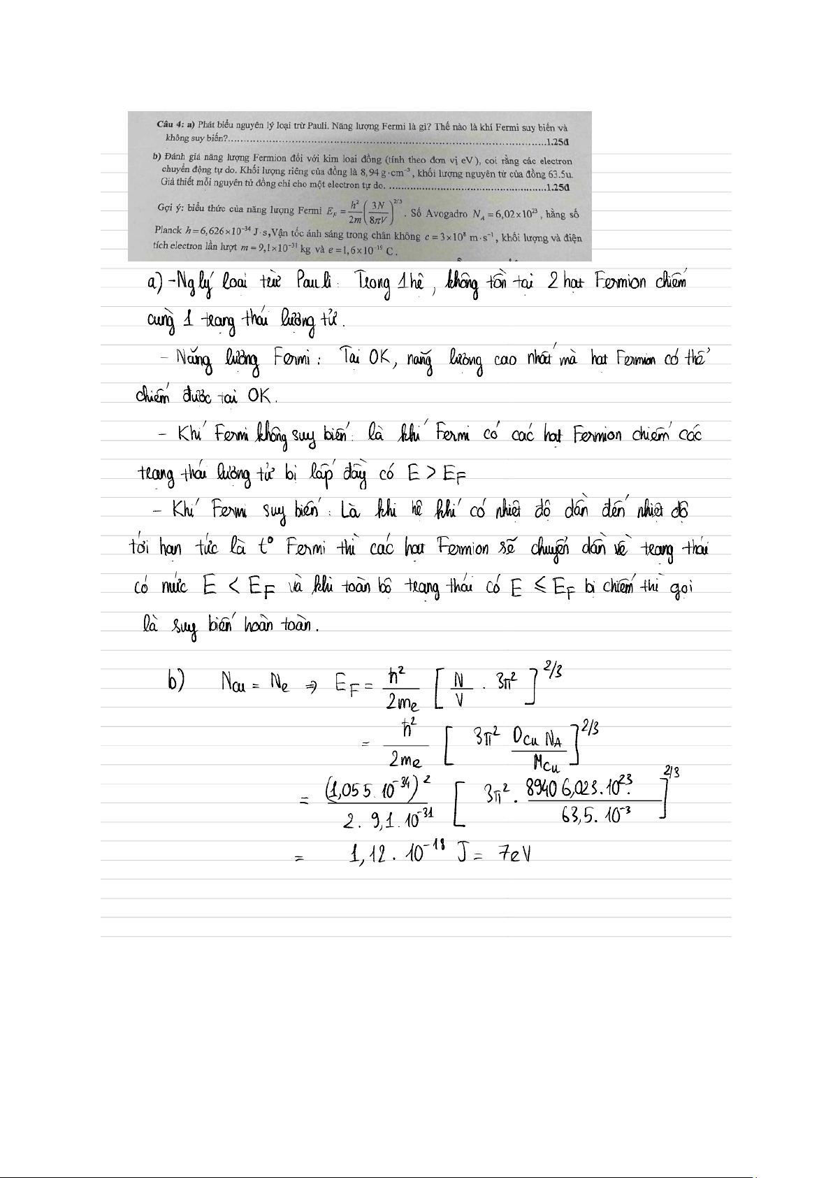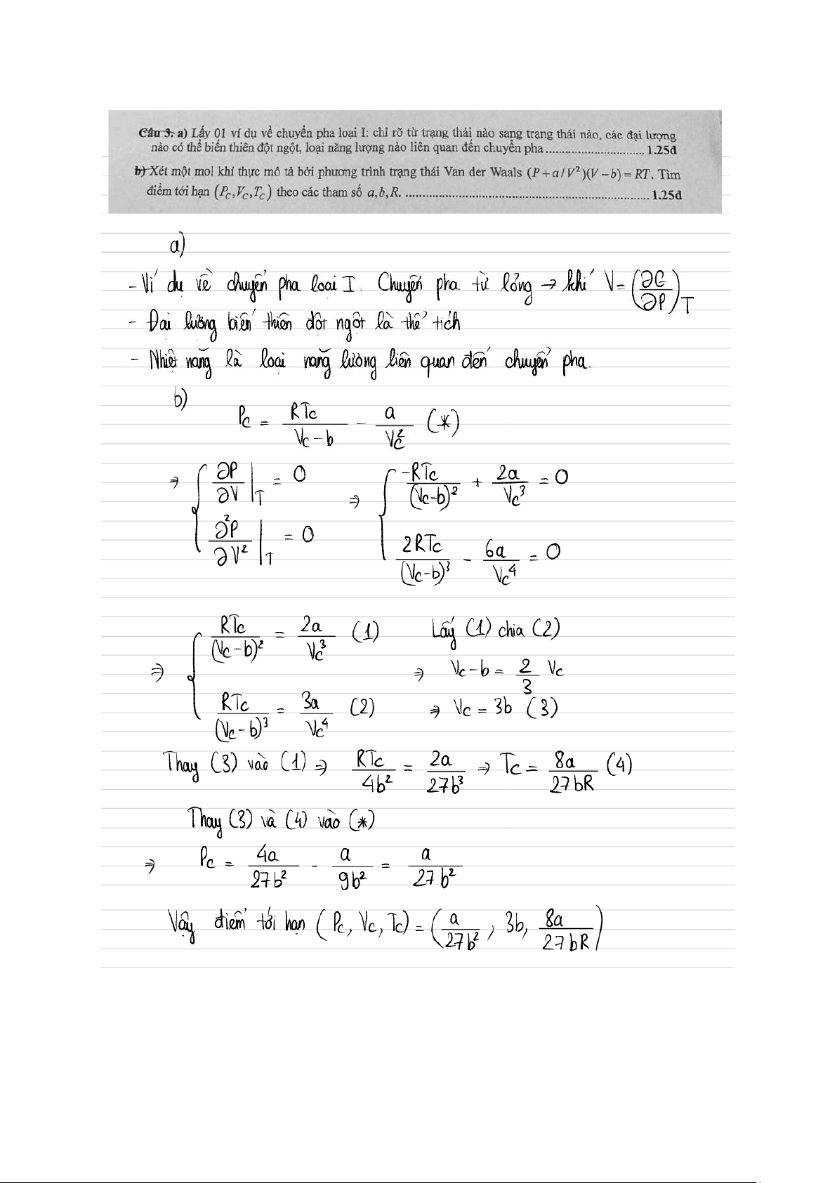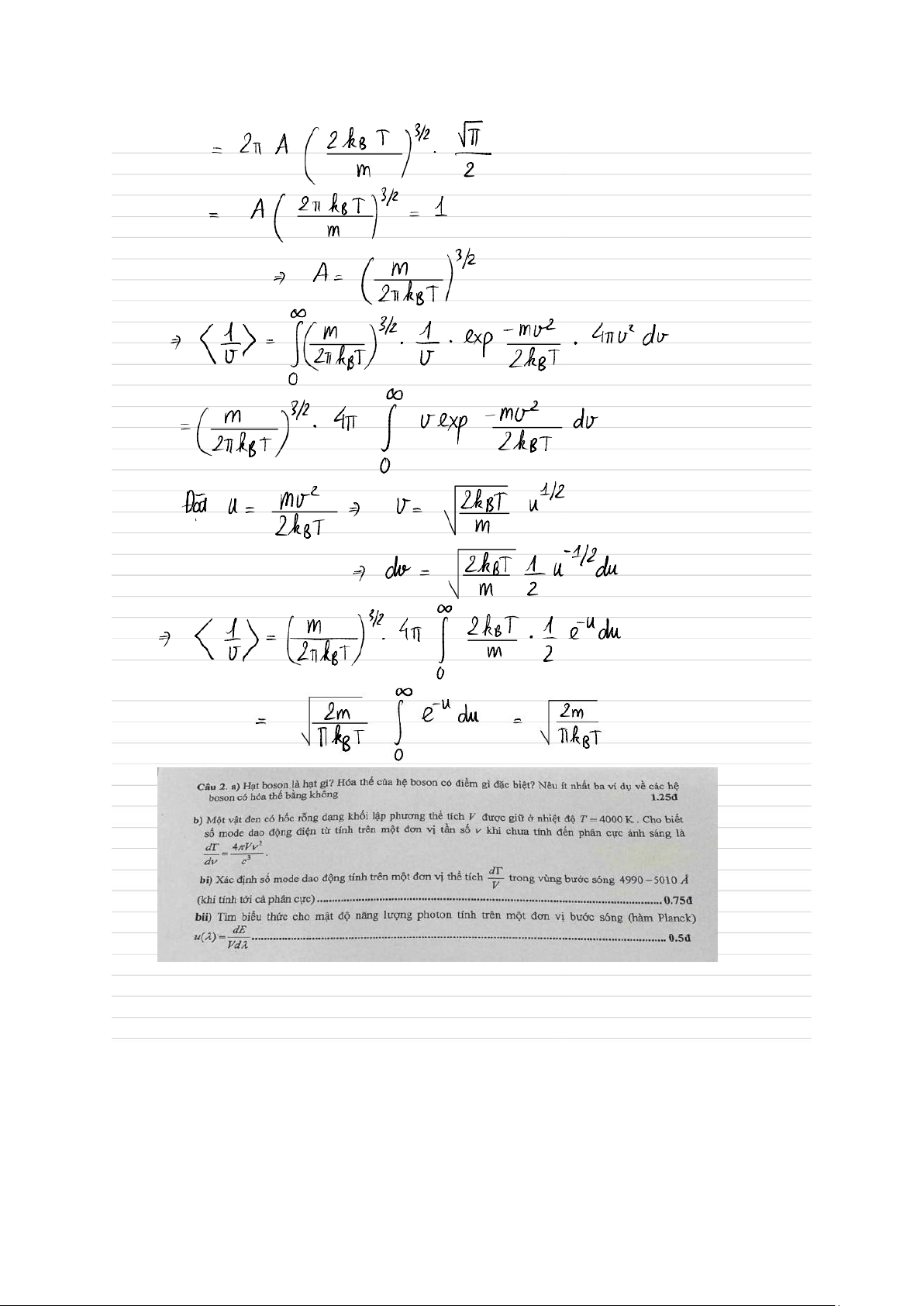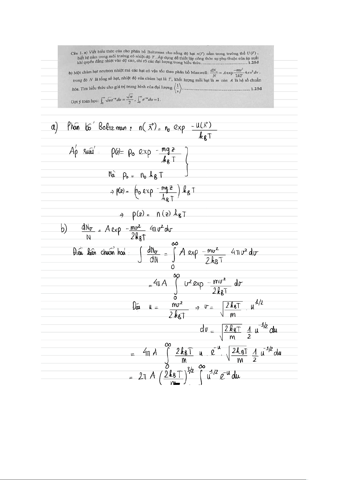 Đề thi và lời giải cuối kỳ I | Môn Vật lý thống kê | Trường Đại học Bách Khoa Hà Nội