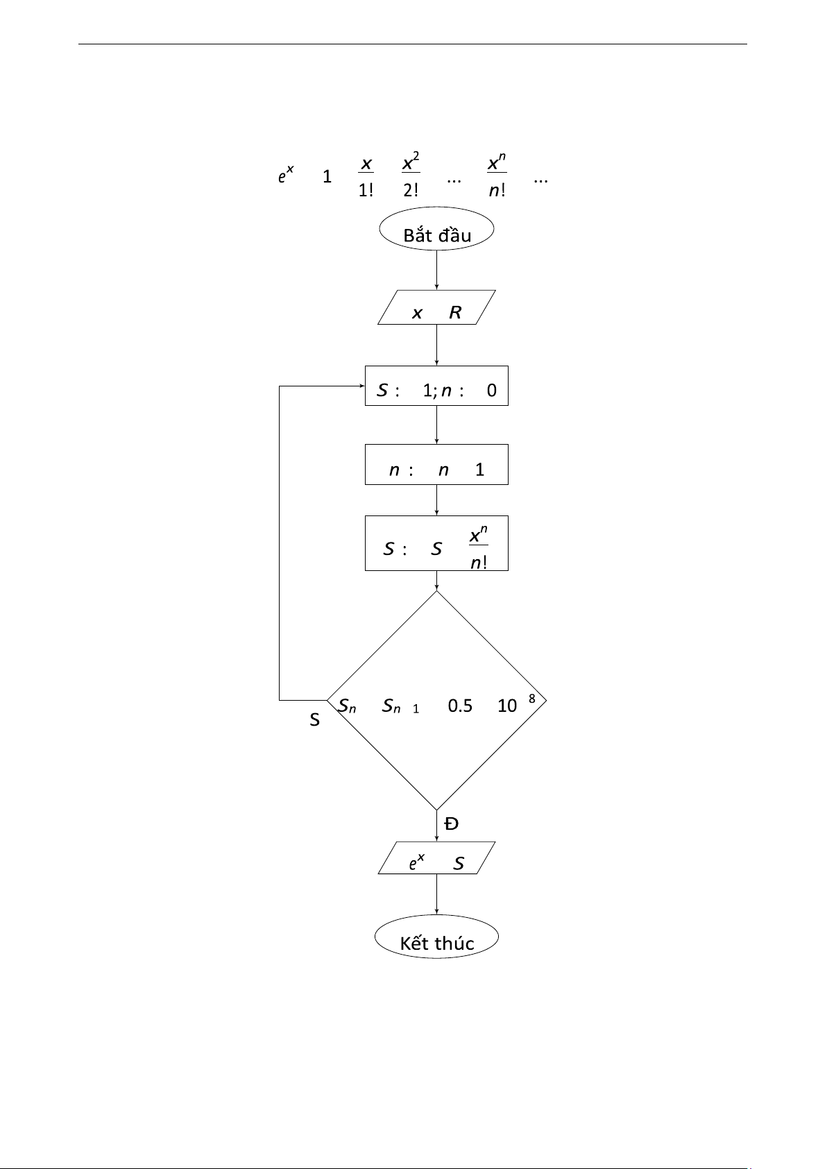 1.5 Viết sơ đồ khối tính xấp xỉ giá trị của số e tới tám chữ số tin tưởng dựa vào khai triển Maclaurin sau: = + + + + + ∈ = = = + = + − − < × − =