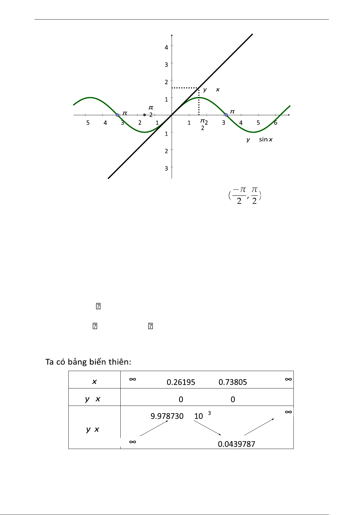 Từ bảng biến thiên ta chọn a = 0.3, b = 0.7 và dễ thấy (a,b) là khoảng cách ly