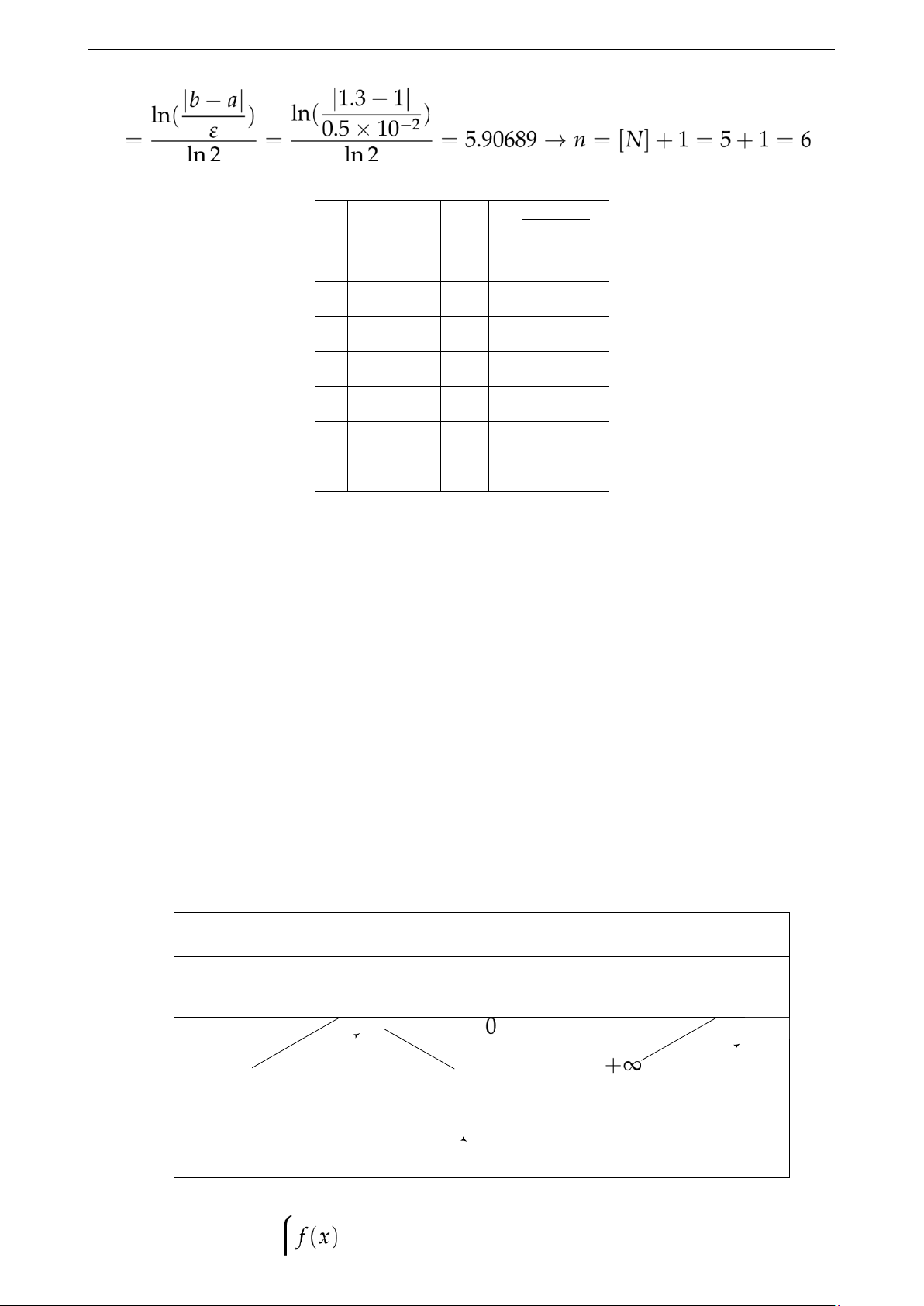 → Số lần lặp n = [N] + 1 = 6 + 1 = 7 Vậy ta có bảng f( n n + bn ) a an bn 2 1 0.3 0.7 - 2 0.3 0.5 - 3 0.3 0.4 + 4 0.35 0.4 + 5 0.375 0.4 + 6 0.3875 0.4 - 7 0.3875 0.39375 +