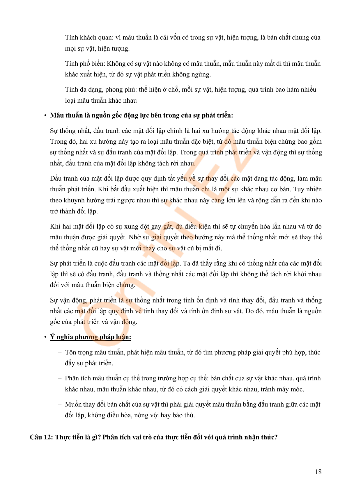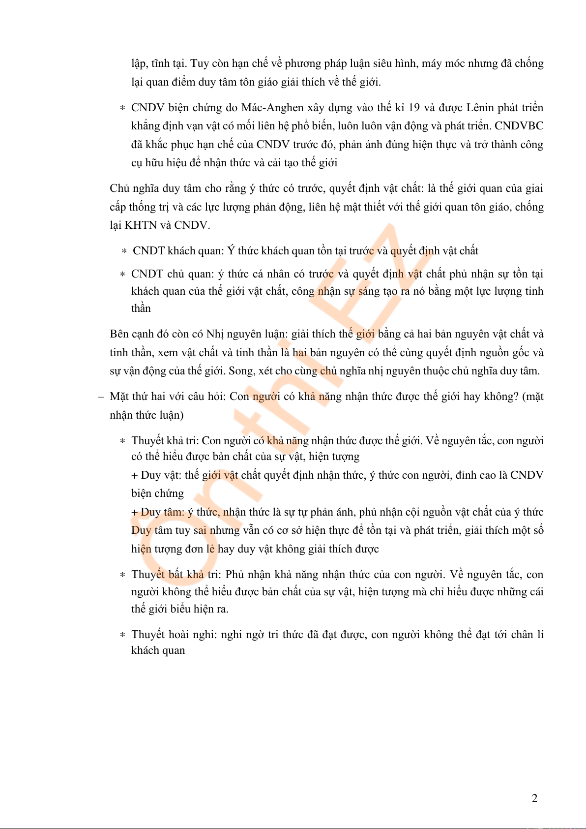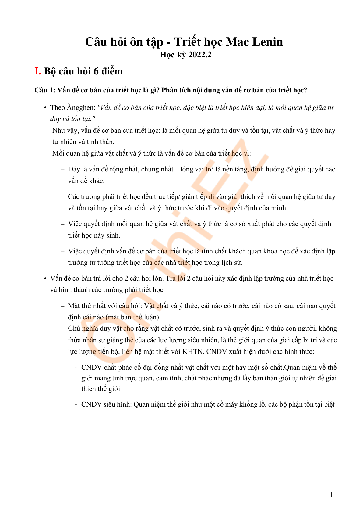 Câu hỏi ôn tập - Triết học Mac Lenin Học kỳ 2022.2
