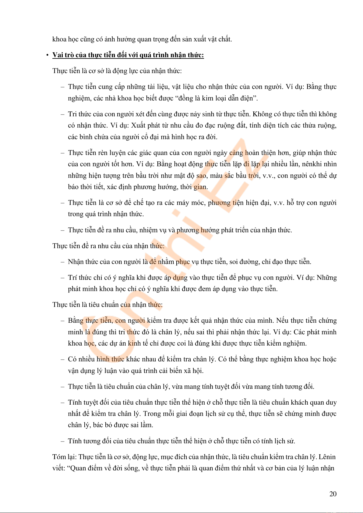Tóm lại: Thực tiễn là cơ sở, động lực, mục đích của nhận thức, là tiêu chuẩn kiểm tra chân lý. Lênin