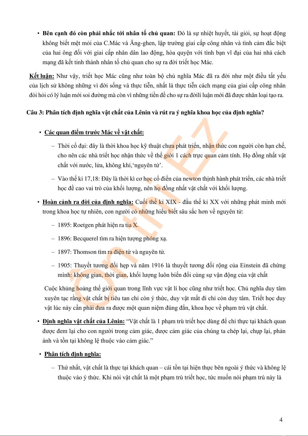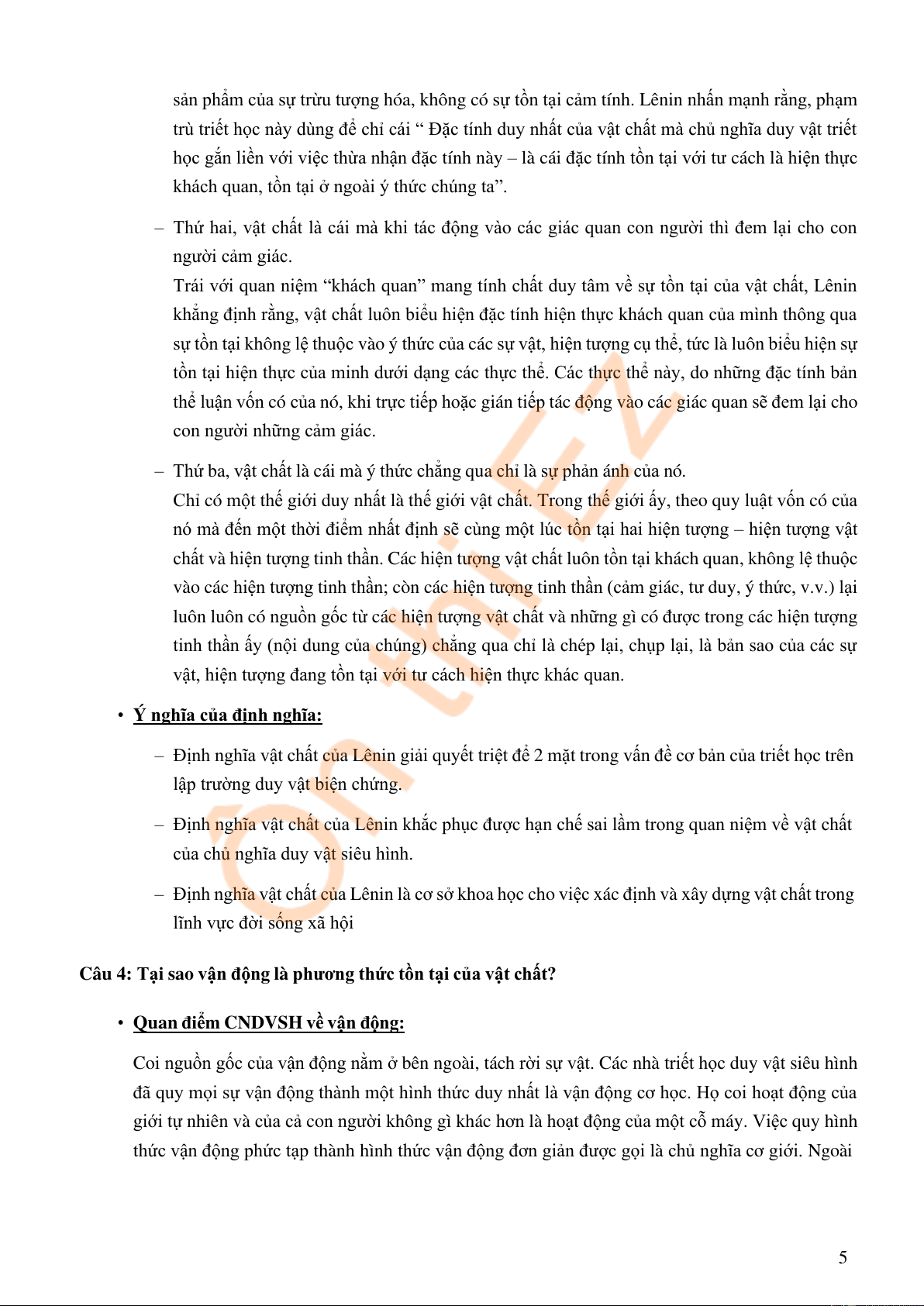 Câu 3: Phân tích định nghĩa vật chất của Lênin và rút ra ý nghĩa khoa học của định nghĩa?
