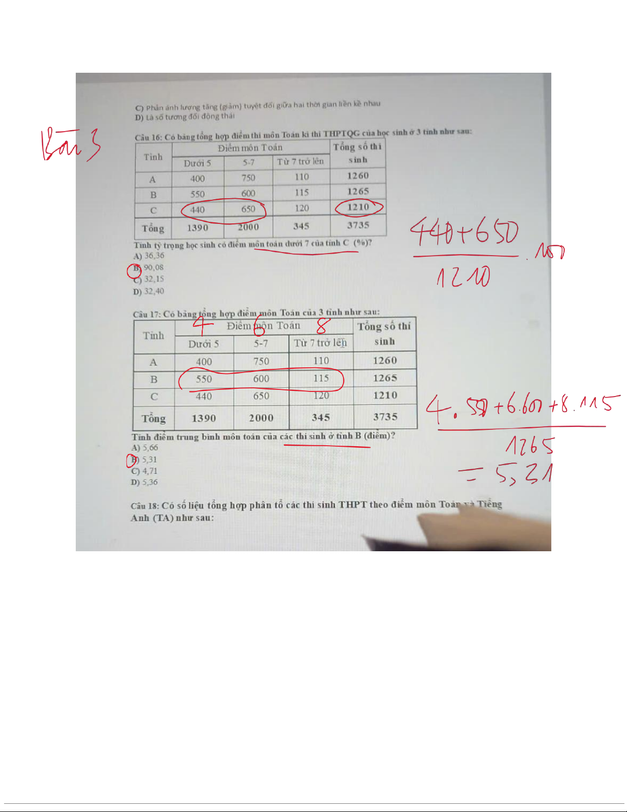 Do số bình quân bài cho là đang bị làm tròn trong khi kết quả tính độ lệc y