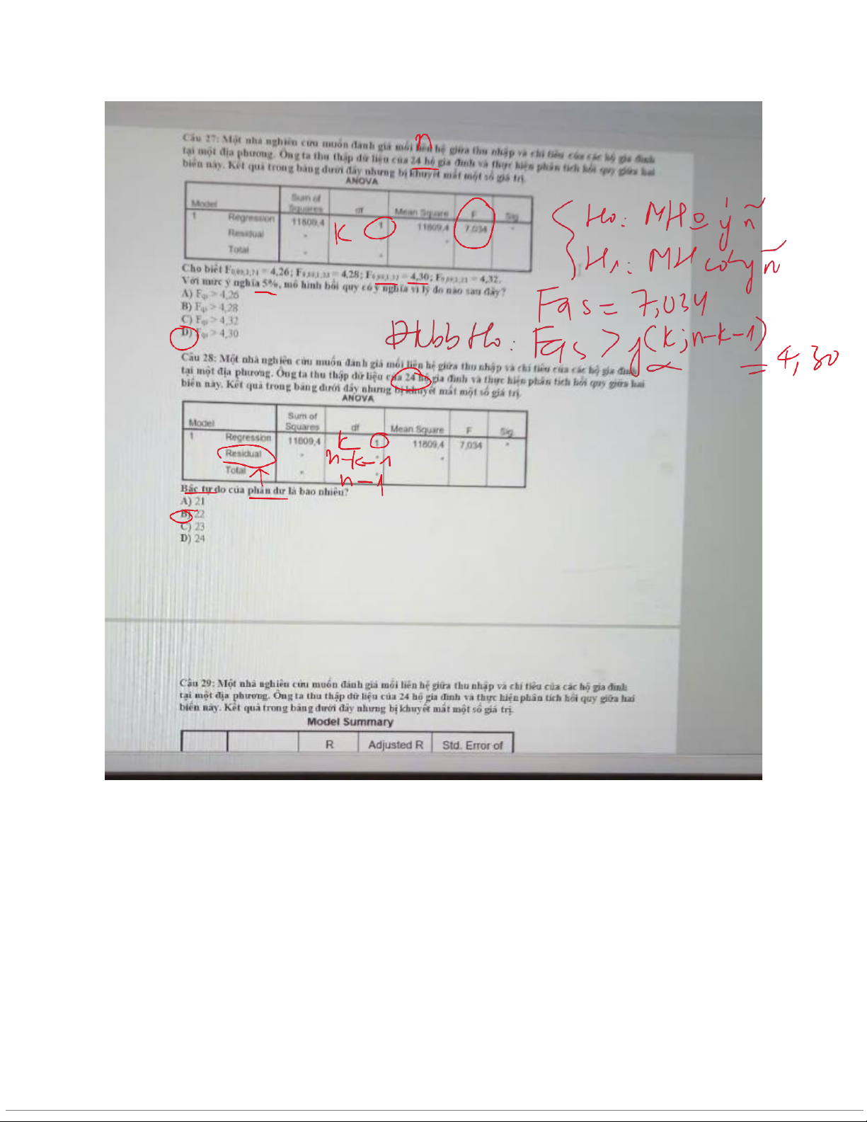 23/ Bậc tự do (df = degree of freedom) chương 5 là n-1. Chương 6 là n-k-1