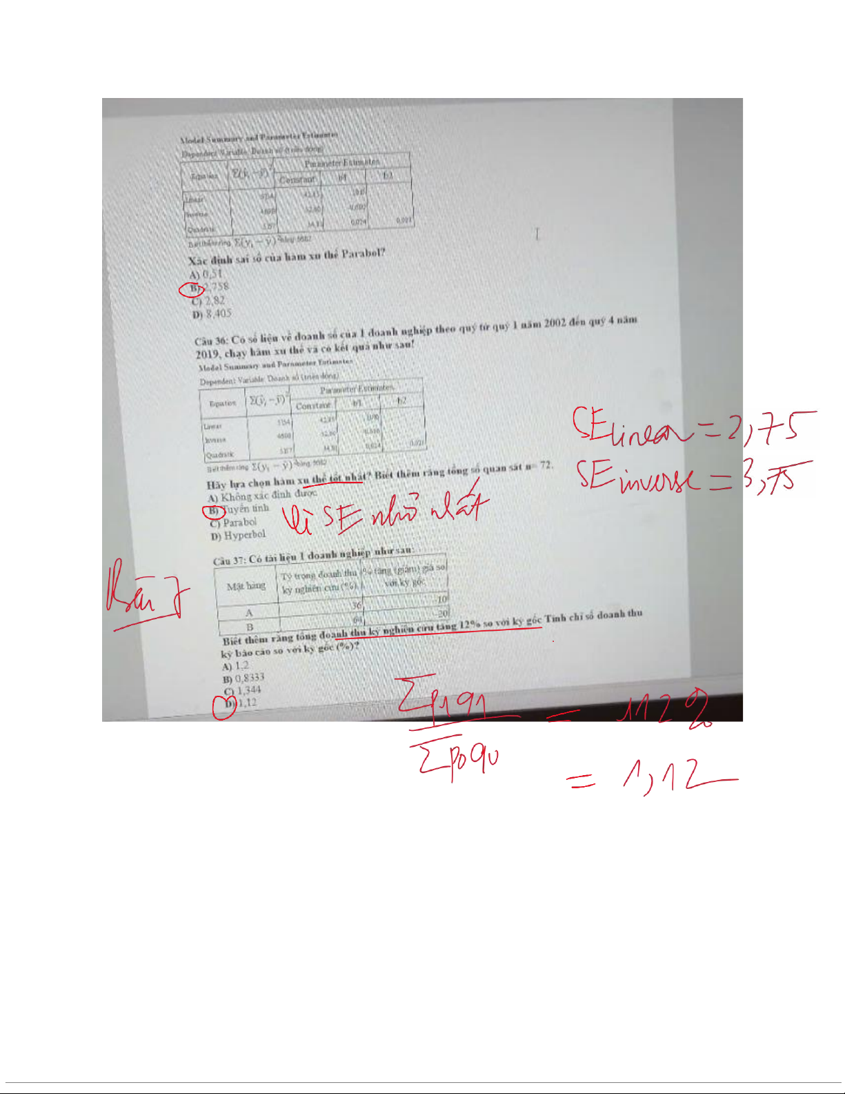 Hàm Linear or Inverse thì k=1 ồi quy đơn) (H Hàm Quadratic thì k=2 ồi quy bộ (H i)