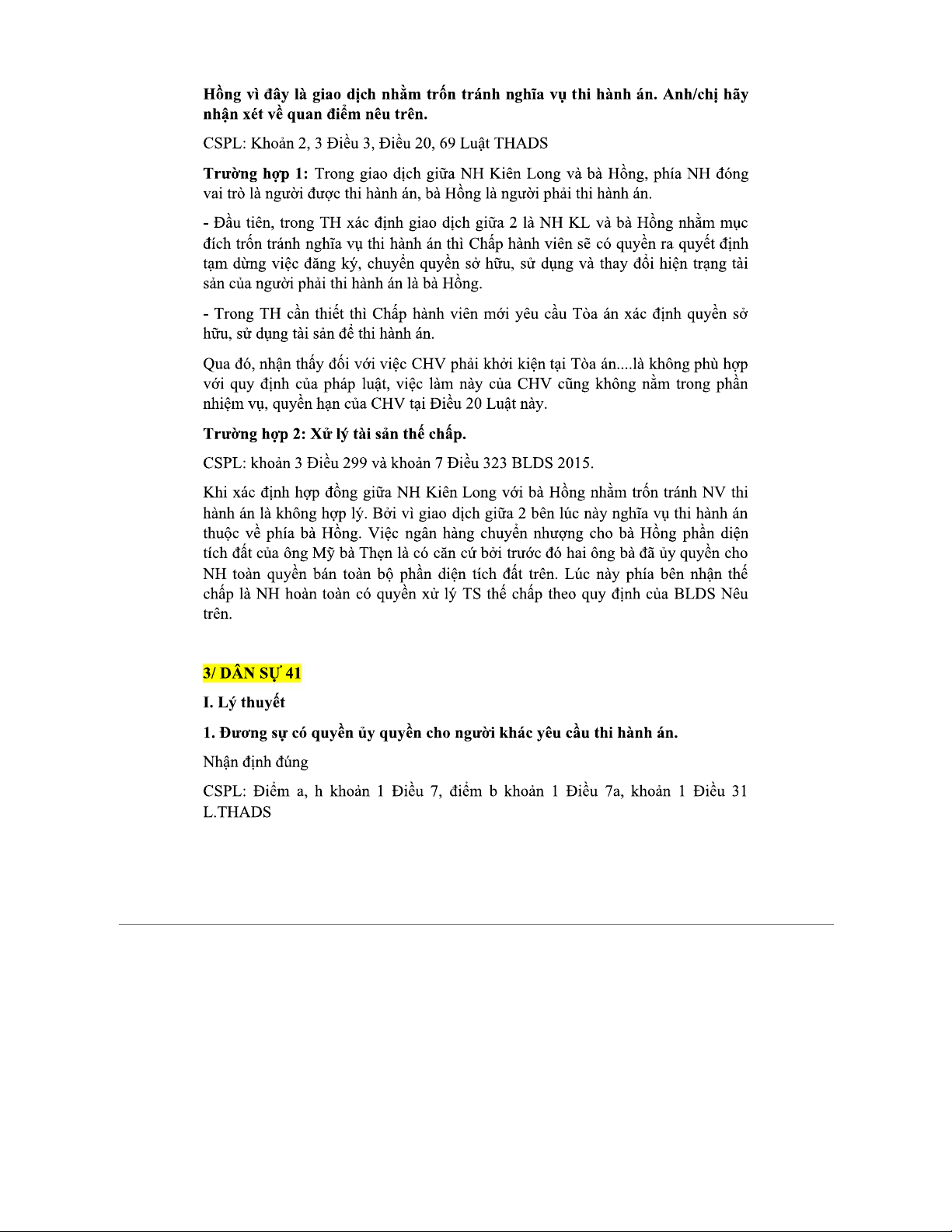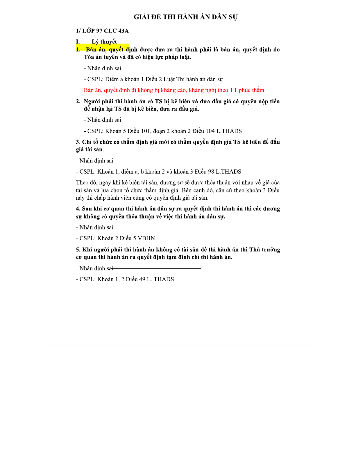 Giải đề thi hành án dân sự - Lớp 97 CLC 43A