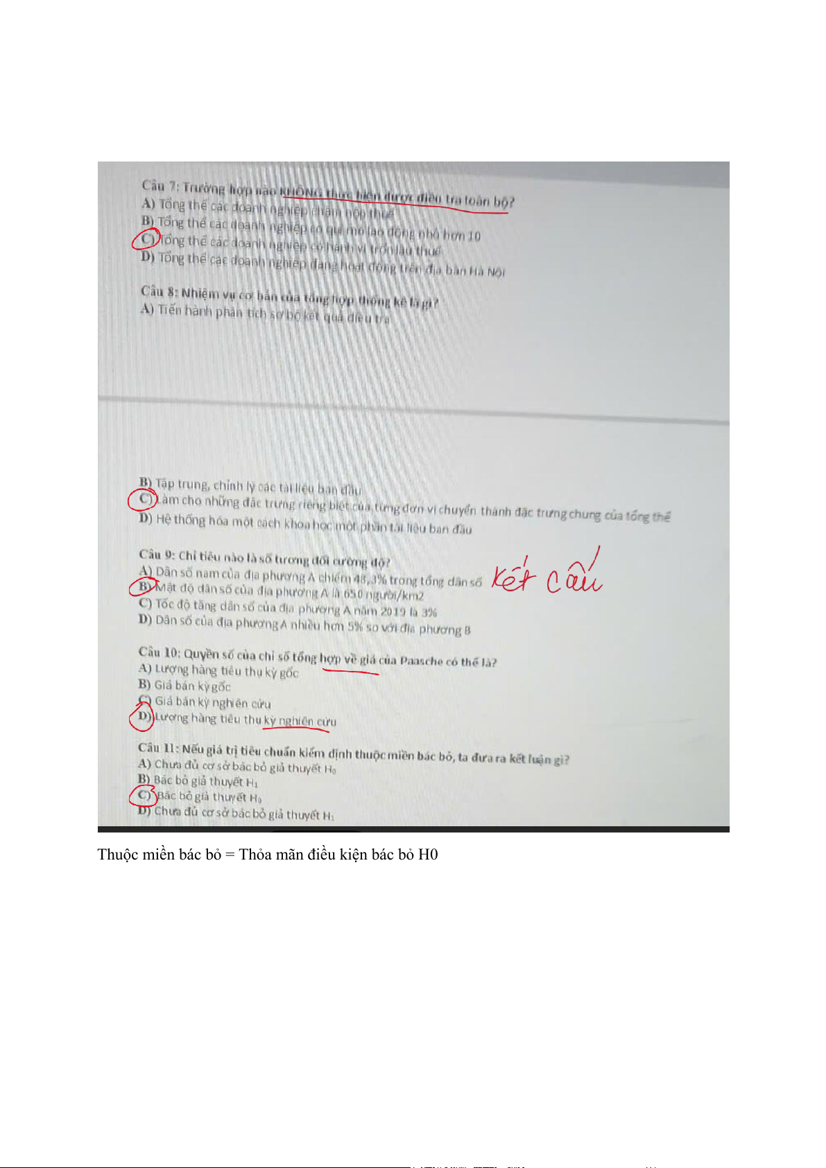 Thuộc miền bác bỏ = Thỏa mãn đ ều kiện bác bỏ i H0