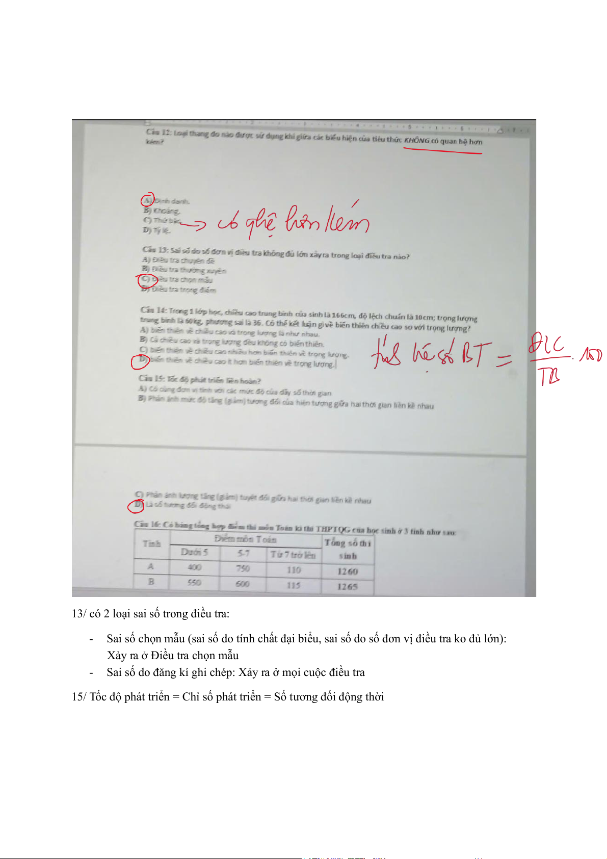 Có 2 loại sai số trong điều tra: - Sai số chọn mẫu (sai số do tính chất đại biểu, sai số do số đơn vị điều tra ko đủ lớn): Xảy ra ở Điều tra chọn mẫu - Sai số do đăng kí ghi chép: Xảy ra ở mọi cuộc điều tra 15/ Tốc độ phát triển = Chỉ số phát triển = Số tương đối động thời. Tài liệu được sưu tầm và soạn thảo dưới dạng file PDF với mục đích hỗ trợ học tập và tham khảo. Nội dung tài liệu được trình bày rõ ràng, dễ tiếp cận, phù hợp cho việc ôn tập và củng cố kiến thức trong quá trình học đại học. Đây sẽ là nguồn tư liệu hữu ích giúp các bạn sinh viên chuẩn bị tốt hơn cho các buổi học, đồng thời mở rộng thêm hiểu biết về môn học. Hy vọng tài liệu này sẽ mang lại nhiều giá trị và hỗ trợ các bạn trong hành trình học tập. Mời bạn đọc cùng tham khảo!