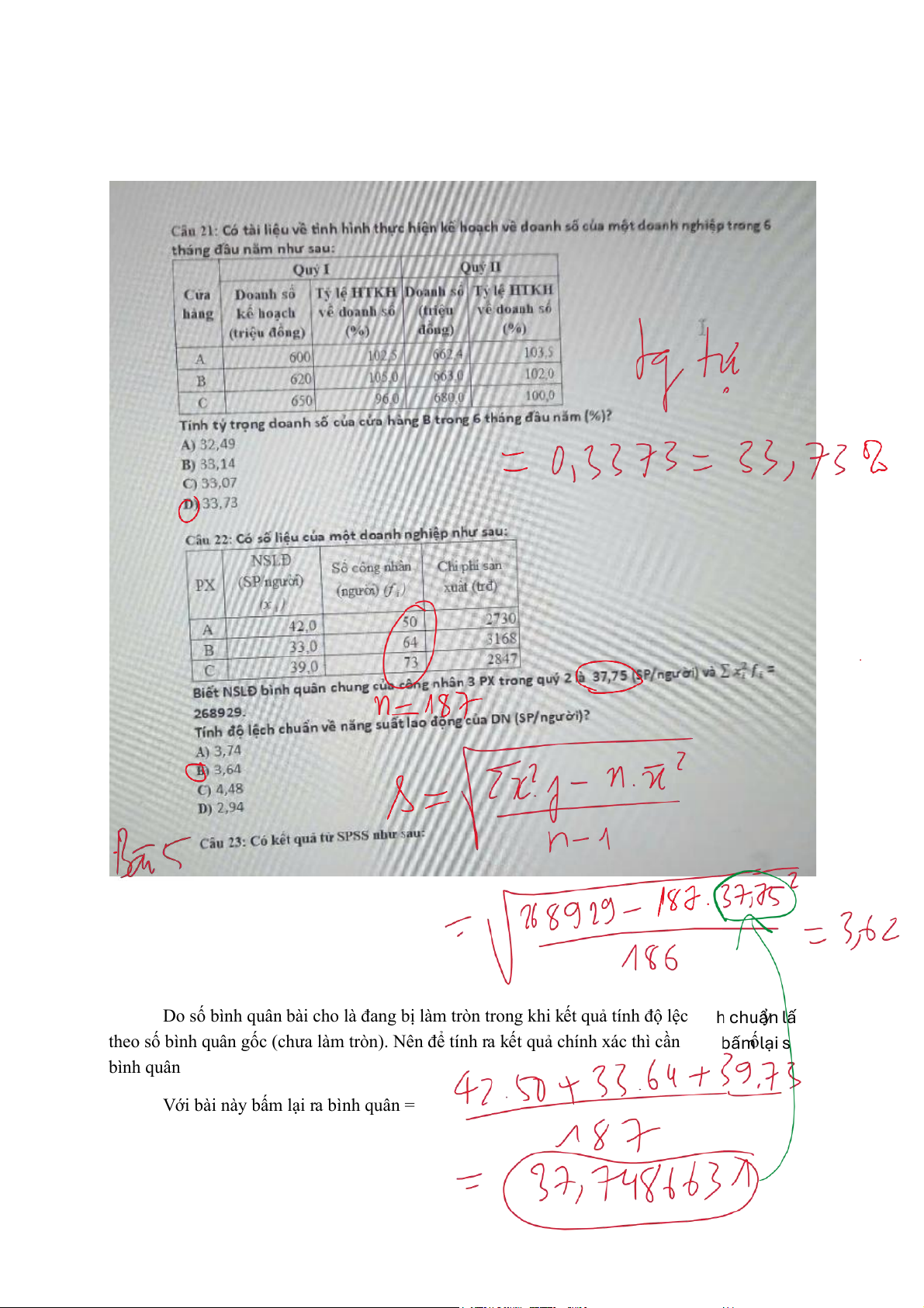 Do số bình quân bài cho là đang bị làm tròn trong khi k ết quả tính độ lệc y