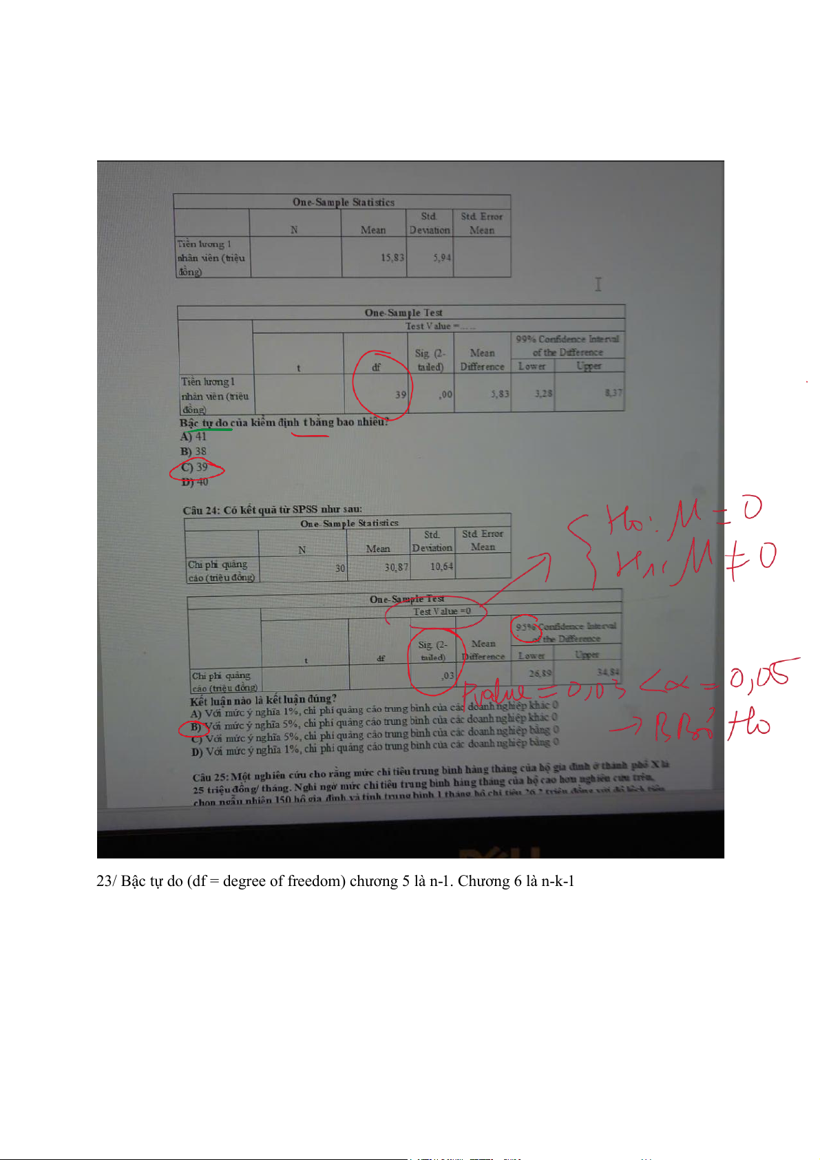 23/ Bậc tự d (df = degree of fr o eedom) c ương 5 là n- h 1. Chương 6 là n-k-1