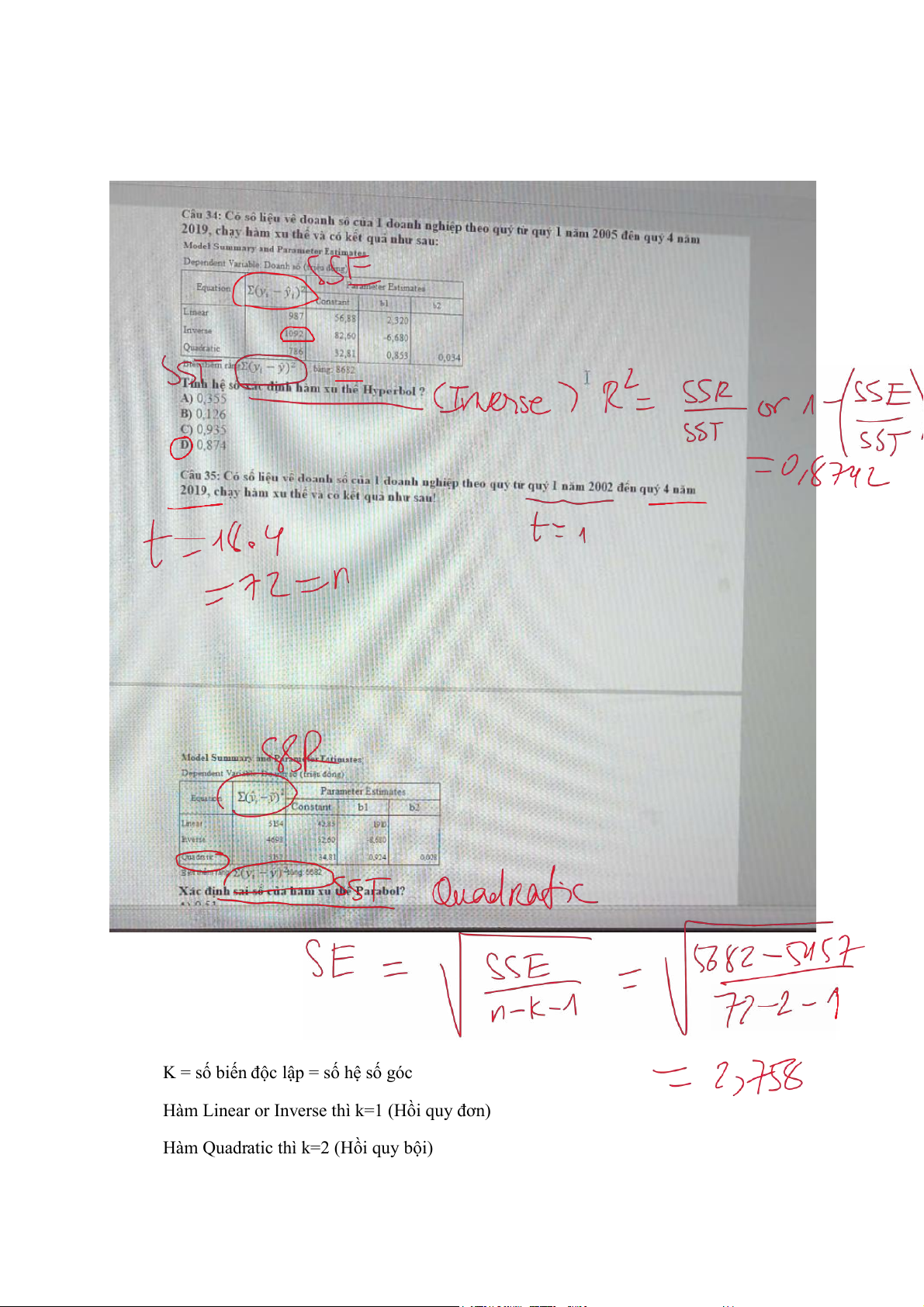 Hàm Quadratic thì k=2 (Hồi quy bội)