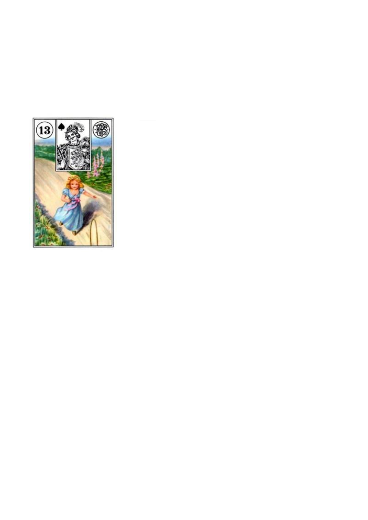 Thời gian: Lá Lenormand Child gắn với số 13. Nó có thể chỉ 13 ngày, 13 tuần, 13 tháng hay 13 năm
