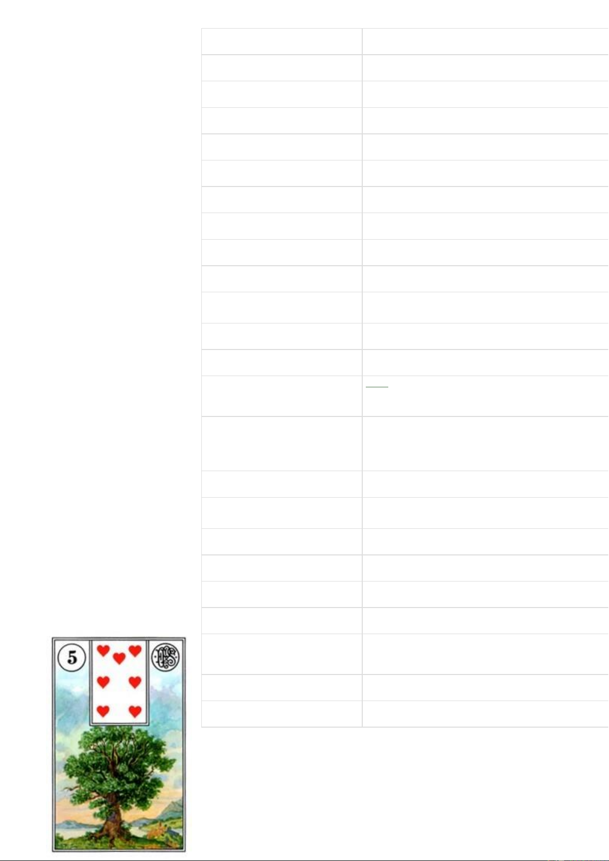 Theo phép bói bài: Nó đại diện cho lá 6 cơ. Nó bao hàm những ký ức của người đến xem bài. Nó nói