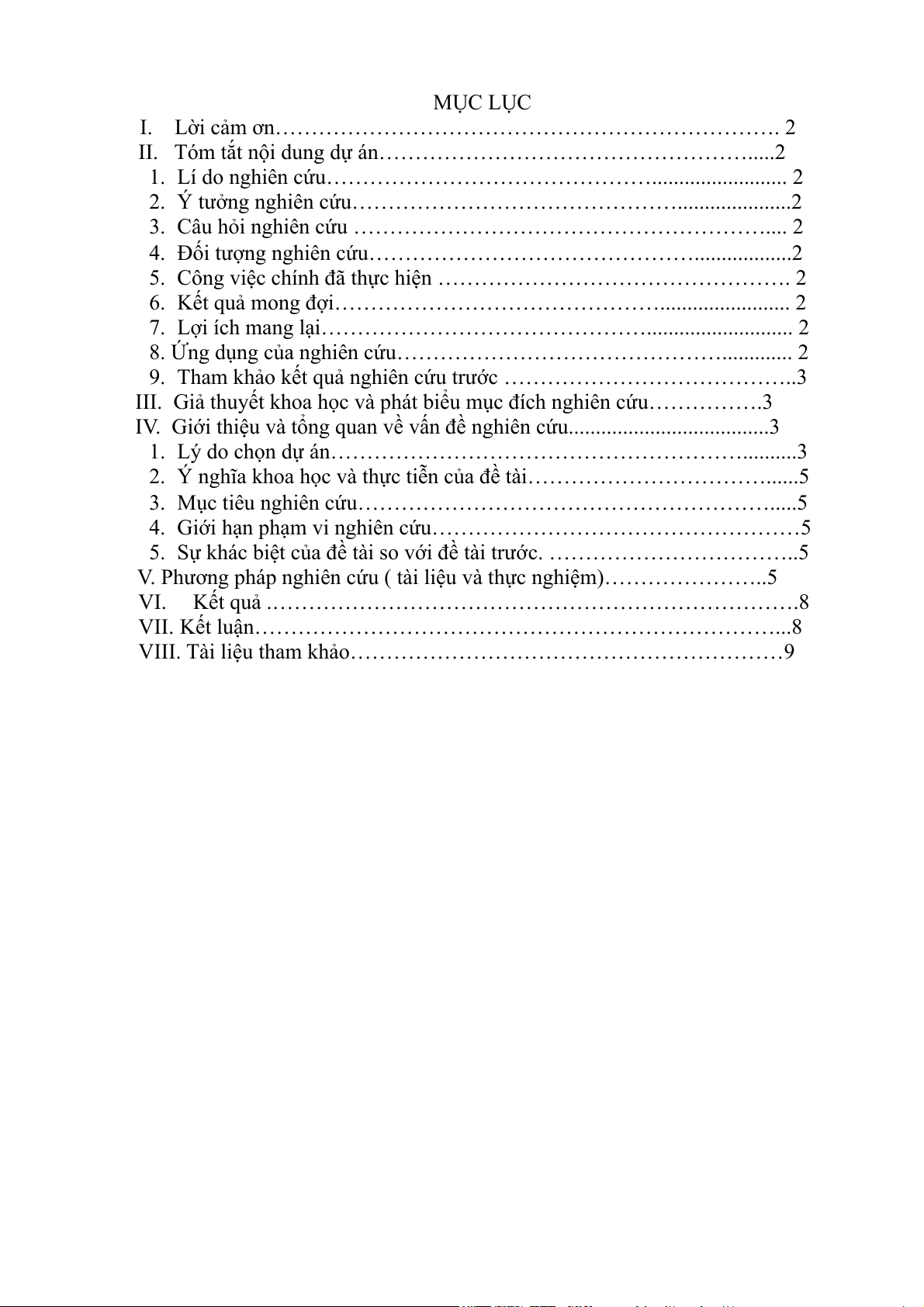VIII. Tài liệu tham khảo……………………………………………………9 2 I. Lời cảm ơn