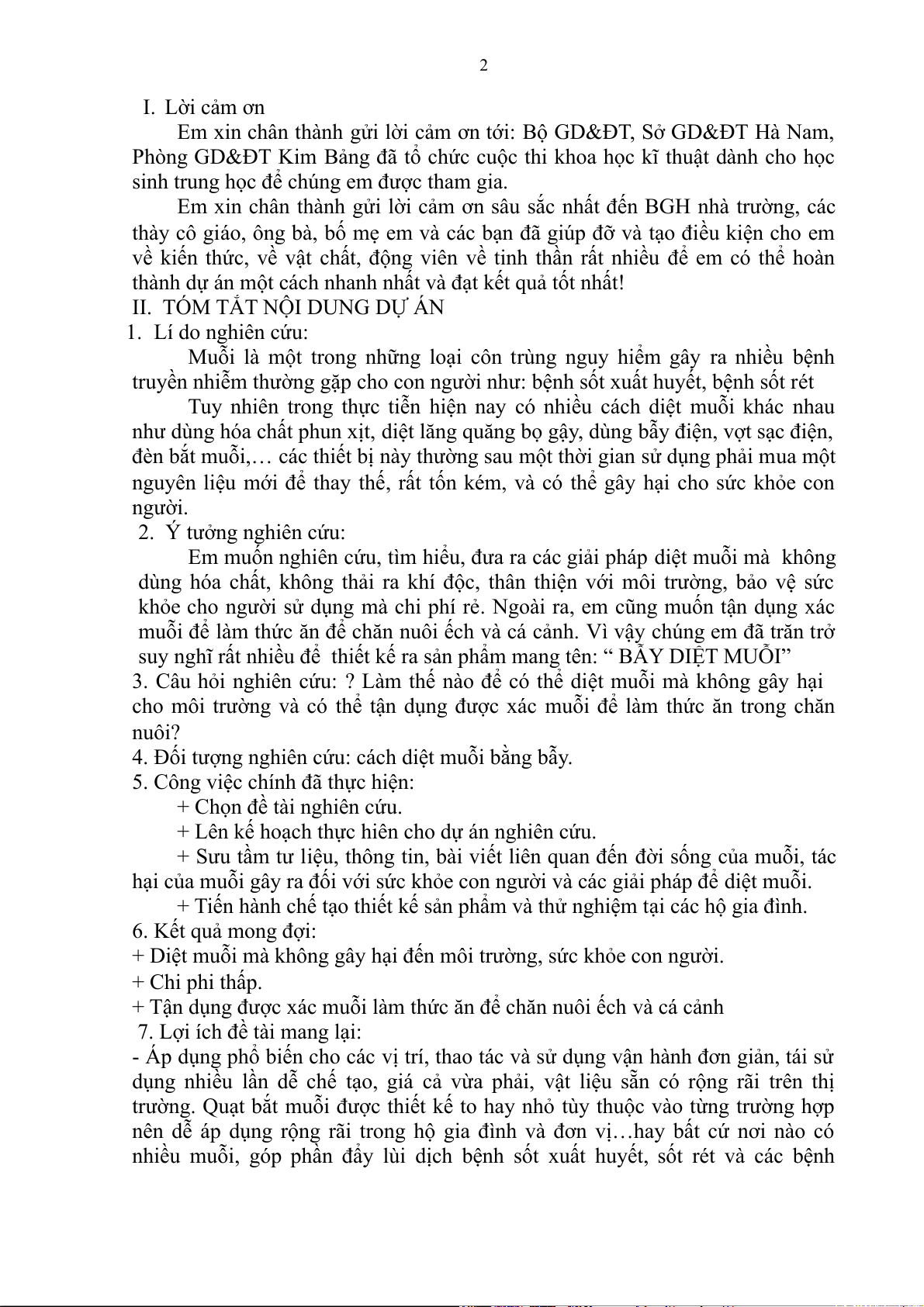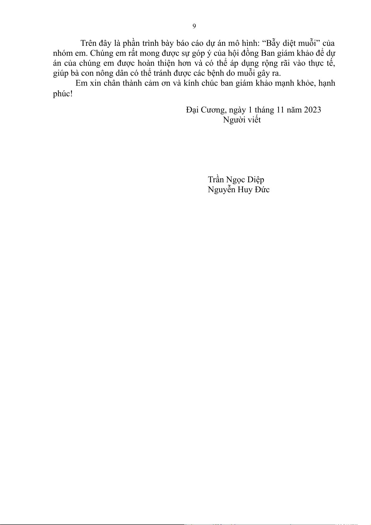 Trên đây là phần trình bày báo cáo dự án mô hình: “Bẫy diệt muỗi” của
