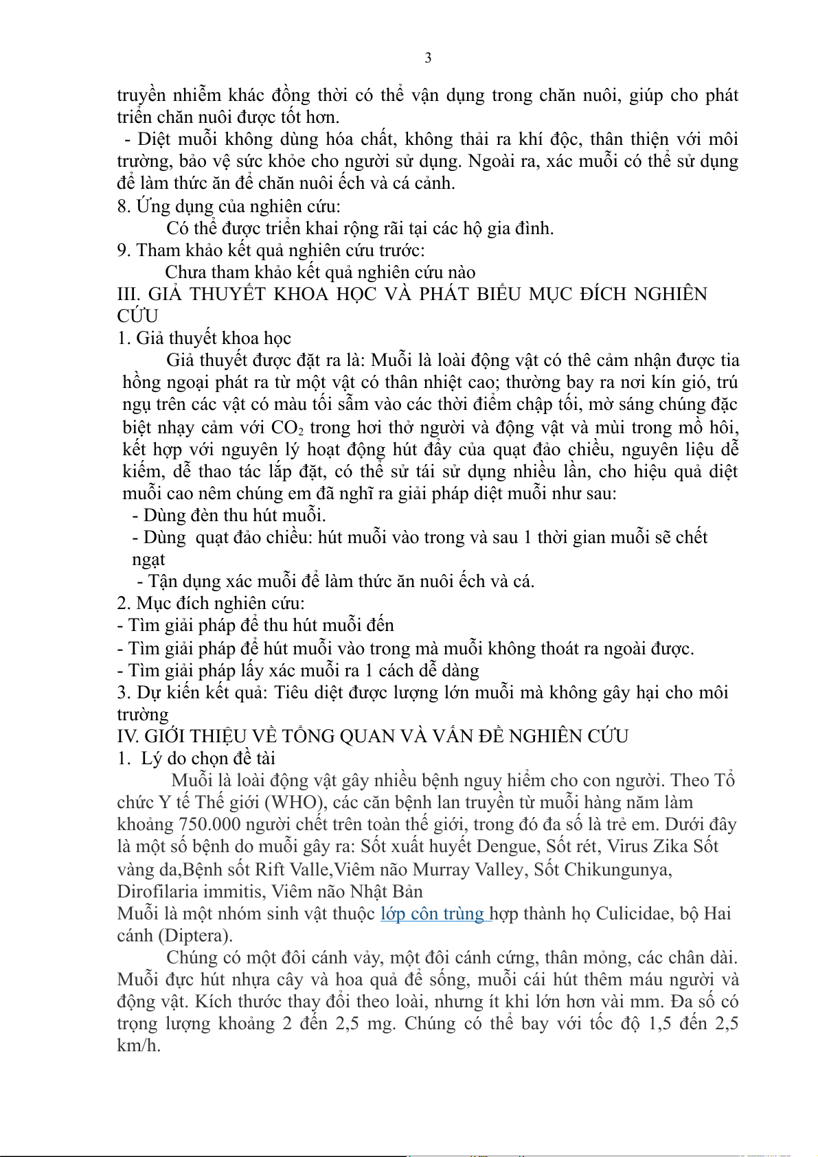 - Ý nghĩa thực tiễn của đề tài: Biện pháp tiêu diệt muỗi này có thể áp dụng