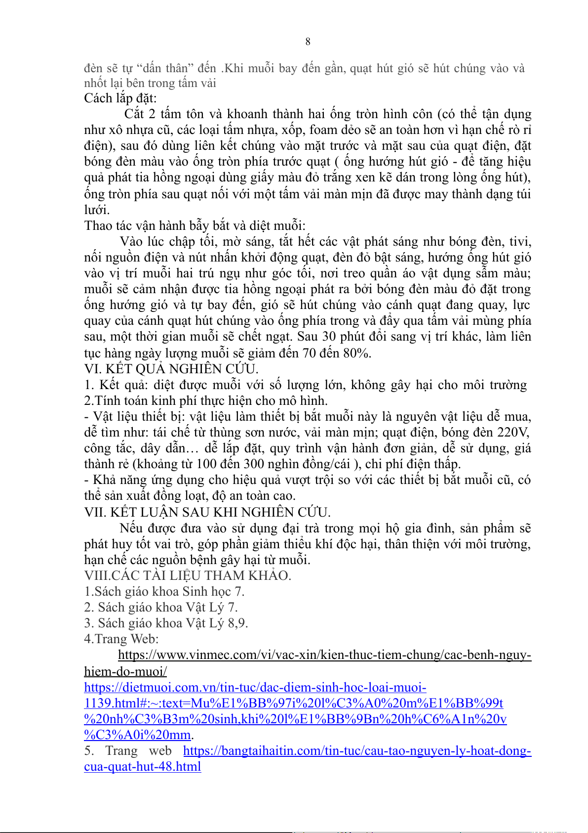 tục hàng ngày lượng muỗi sẽ giảm đến 70 đến 80%. VI. KẾT QUẢ NGHIÊN CỨU.