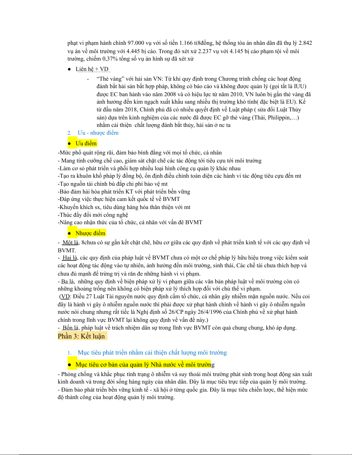 - Bốn là, pháp luật về trách nhiệm dân sự trong lĩnh vực BVMT còn quá chung chung, khó áp dụng. Phần 3: Kết luận 1.