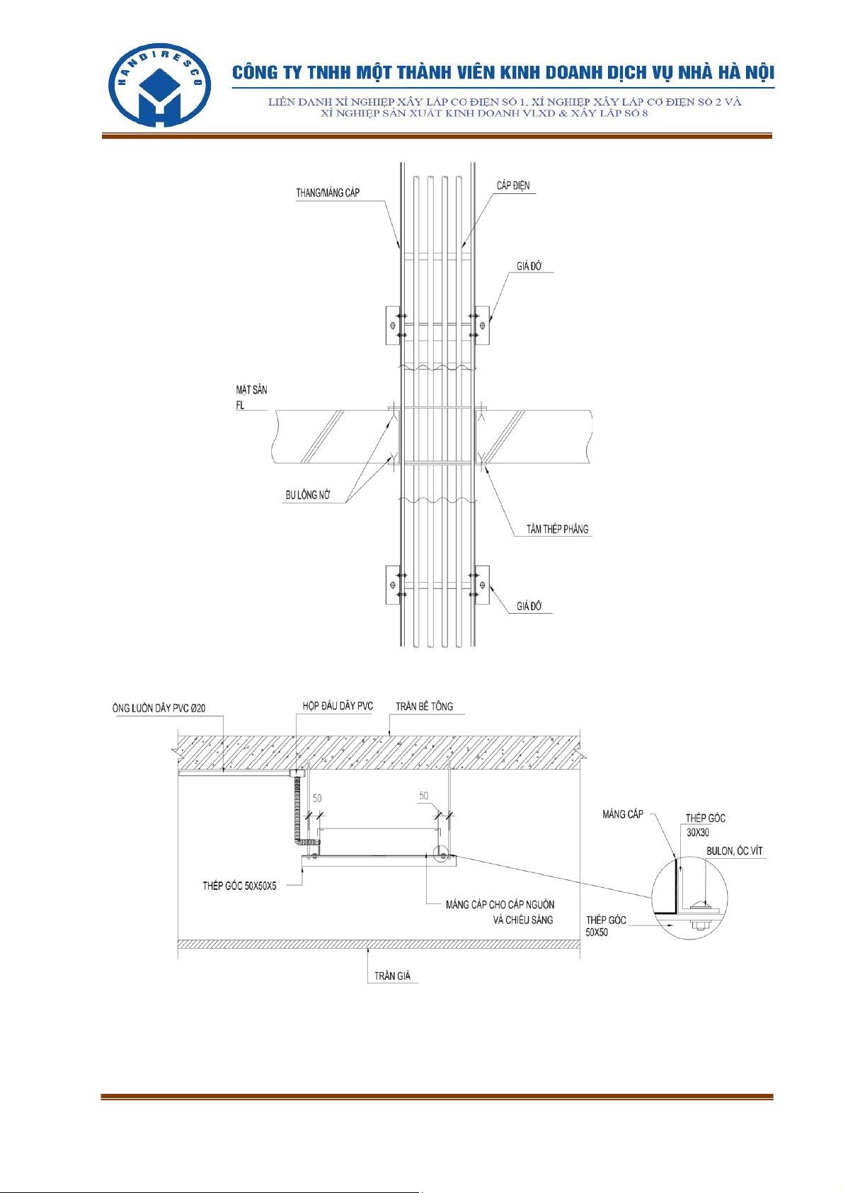 vào giá đỡ, các tuyến thang, máng đi đứng sẽ được nhà thầu lắp đặt từ dưới lên. 1.3