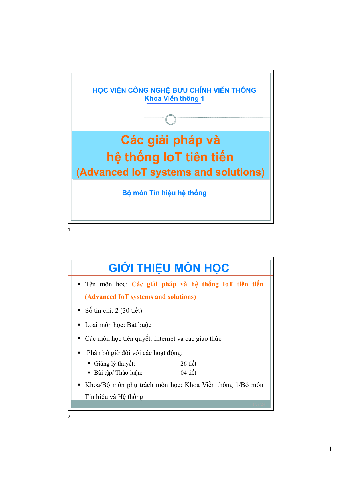 § Khoa/Bộ môn phụ trách môn học: Khoa Viễn thông 1/Bộ môn Tín hiệu và Hệ thống 1/29/24 2 1