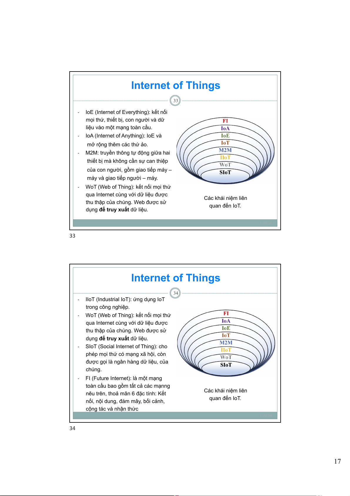 CÁC HỆ THỐNG ỨNG DỤNG IoT TIÊN TIẾN 1/29/24 32 16 Internet of Things 33 -
