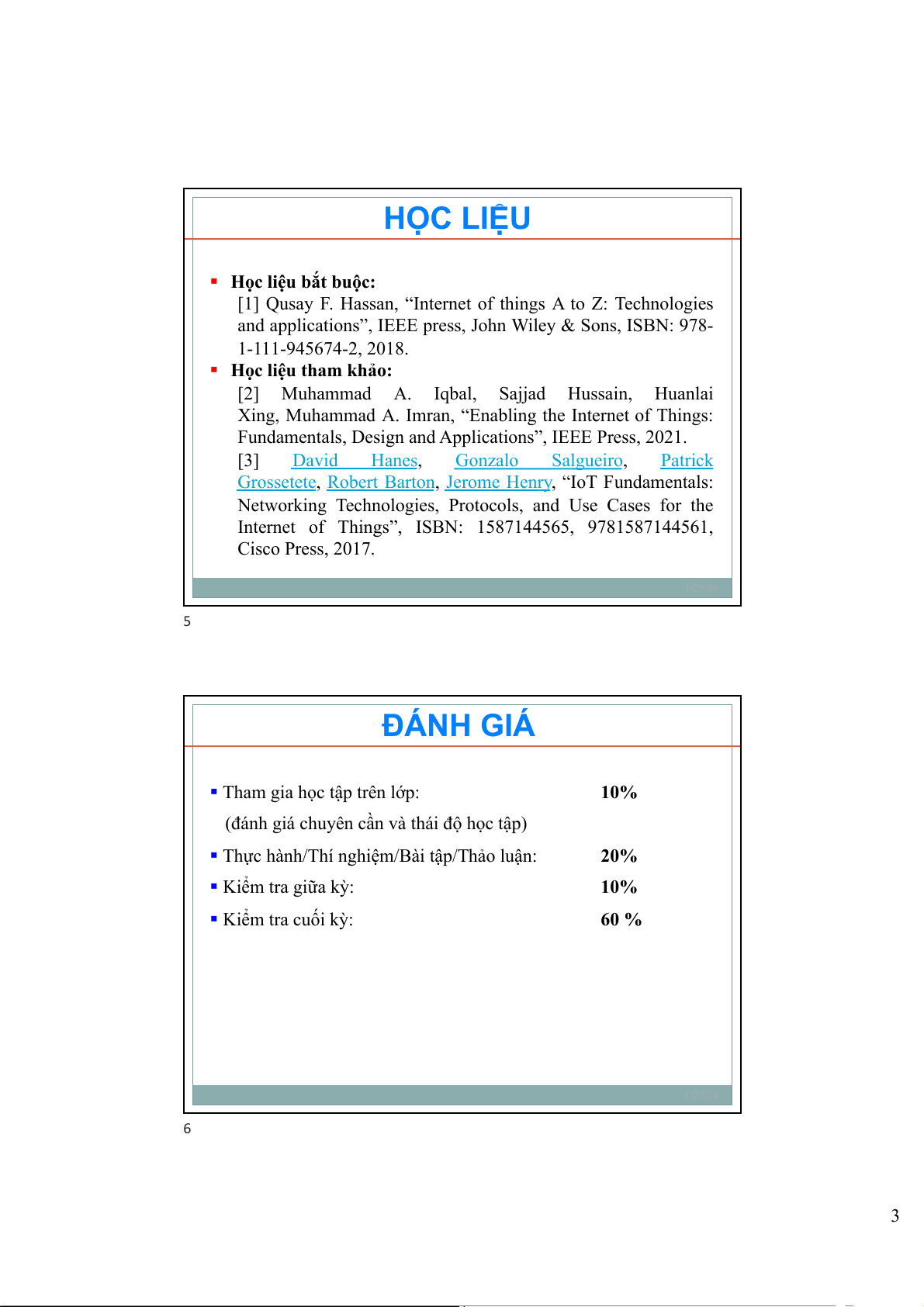 Internet of Things”, ISBN: 1587144565, 9781587144561, Cisco Press, 2017. 1/29/24 5 ĐÁNH GIÁ