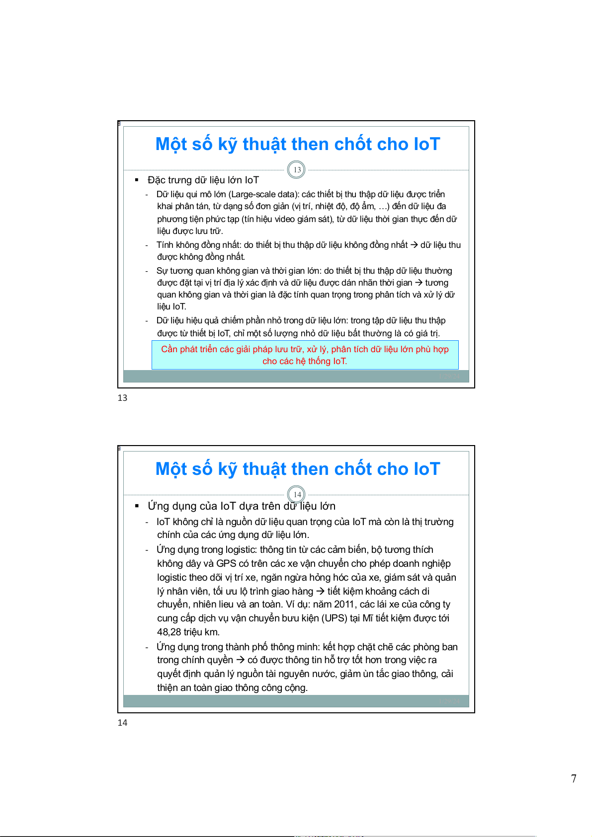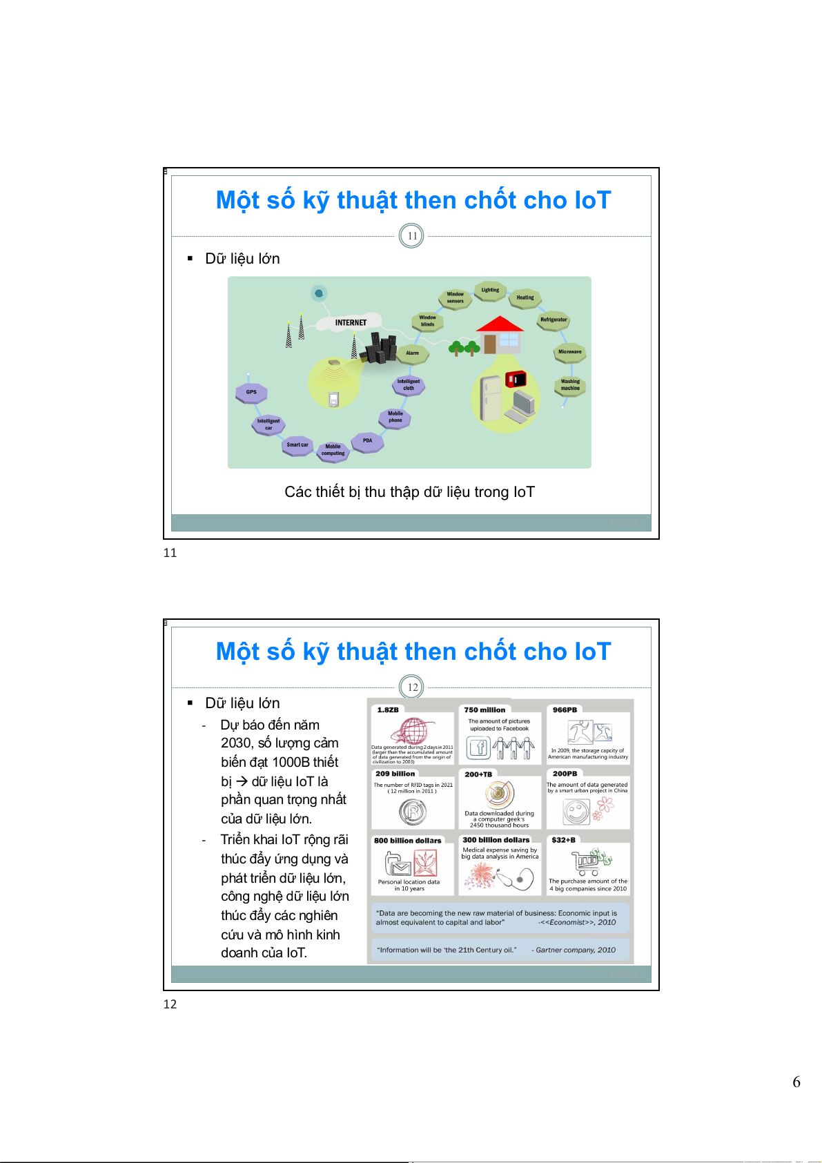 phát triển dữ liệu lớn, công nghệ dữ liệu lớn thúc đẩy các nghiên cứu và mô hình kinh doanh của IoT. 1/29/24 12 6