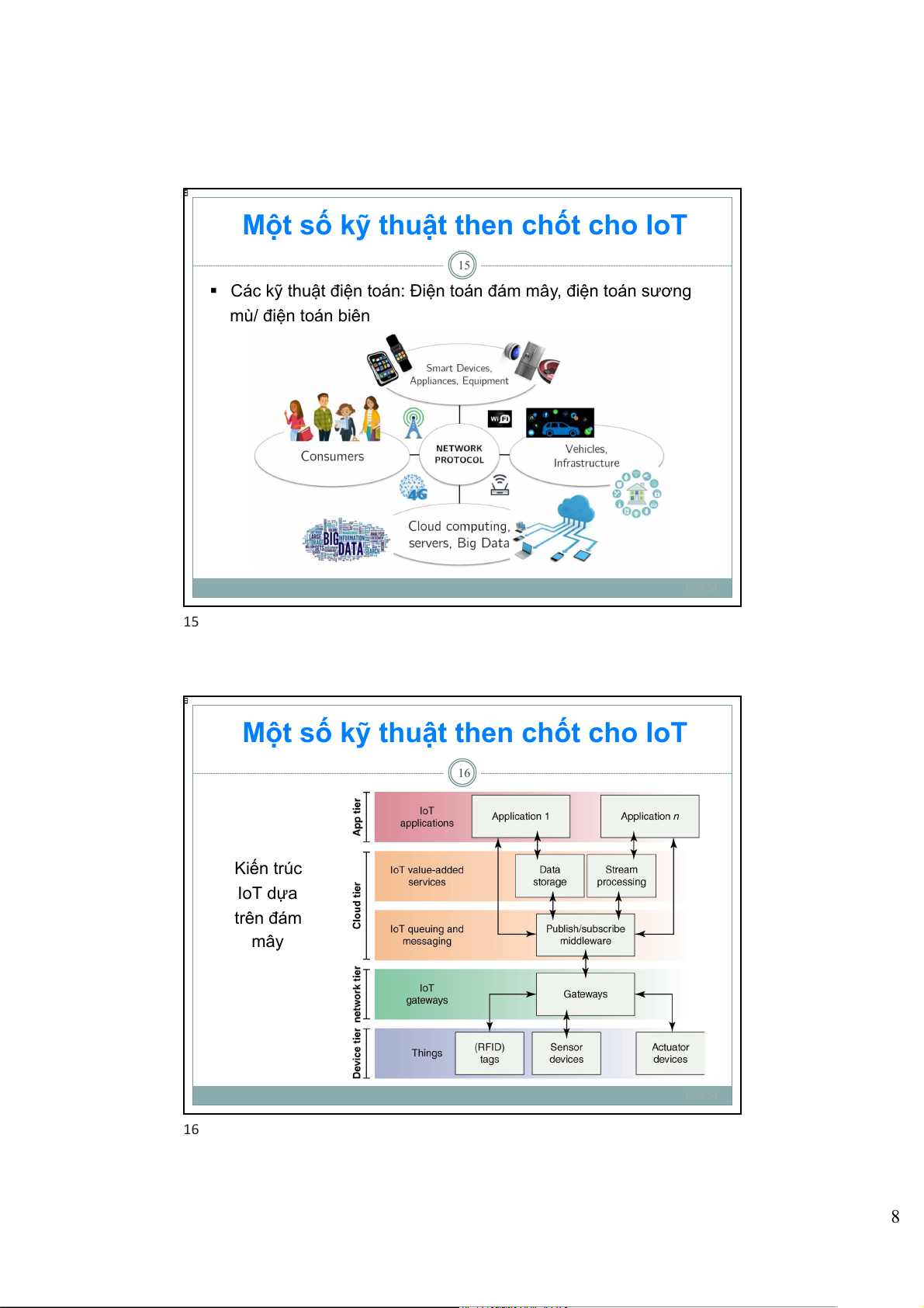 Một số kỹ thuật then chốt cho IoT 16 Kiến trúc IoT dựa trên đám mây 1/29/24 16 8
