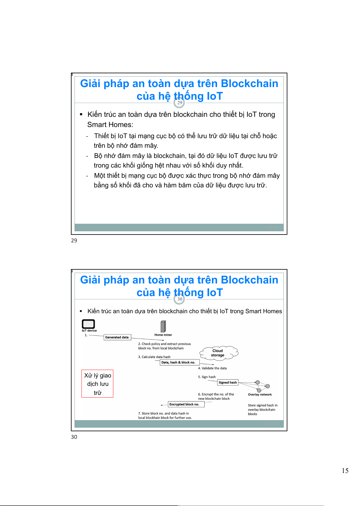§ Kiến trúc an toàn dựa trên blockchain cho thiết bị IoT trong Smart Homes Xử lý giao dịch lưu trữ 1/29/24 30 15