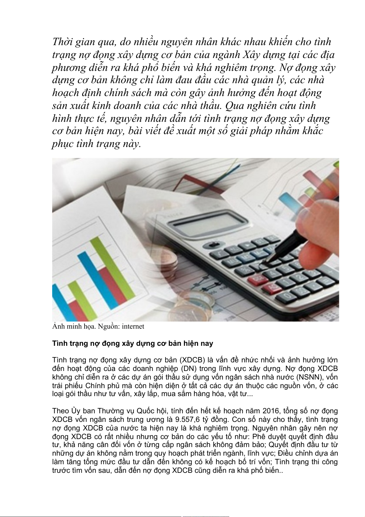 nợ đọng XDCB của nước ta hiện nay là khá nghiêm trọng. Nguyên nhân gây nên nợ