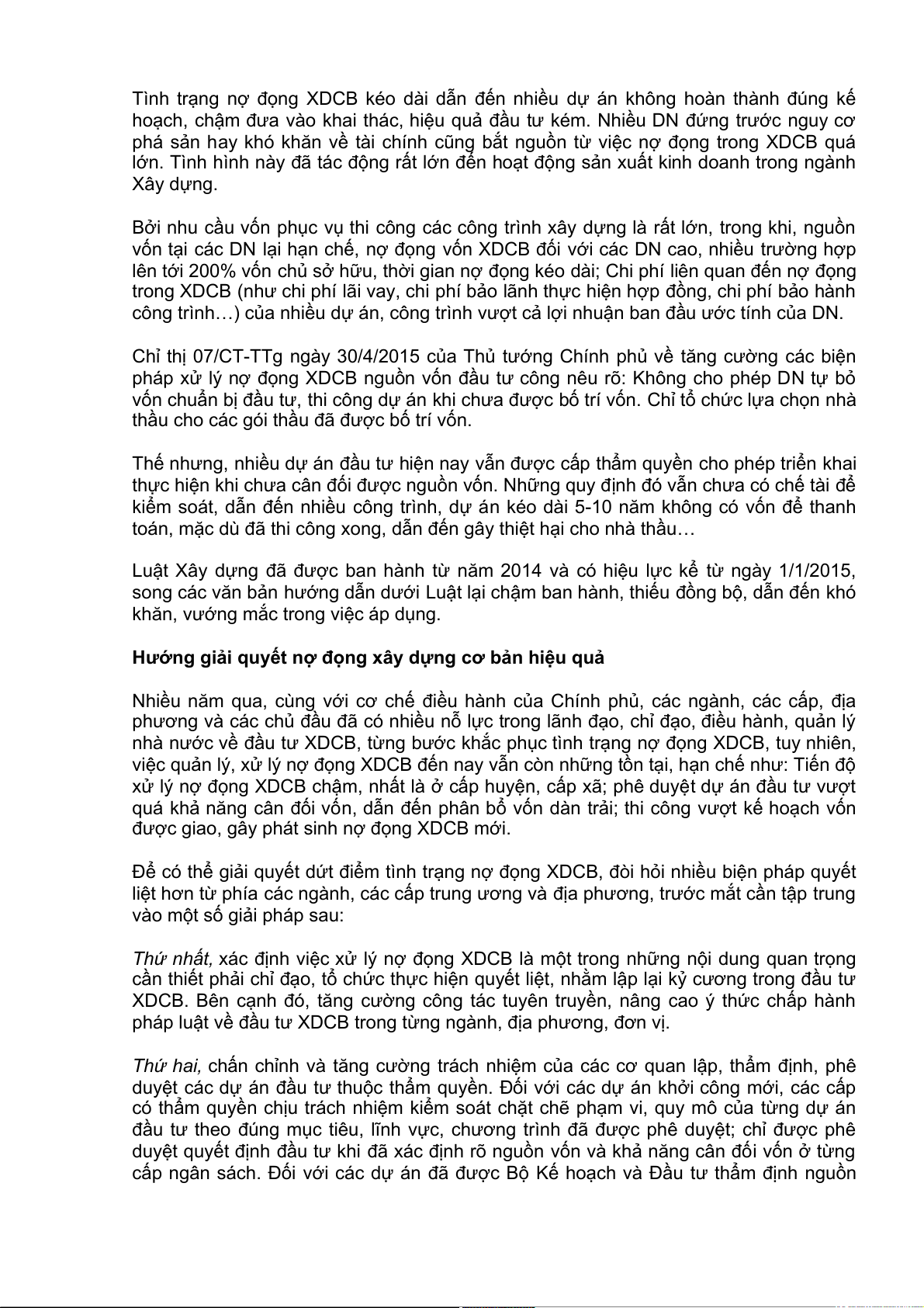 đến hoạt động của các doanh nghiệp (DN) trong lĩnh vực xây dựng. Nợ đọng XDCB