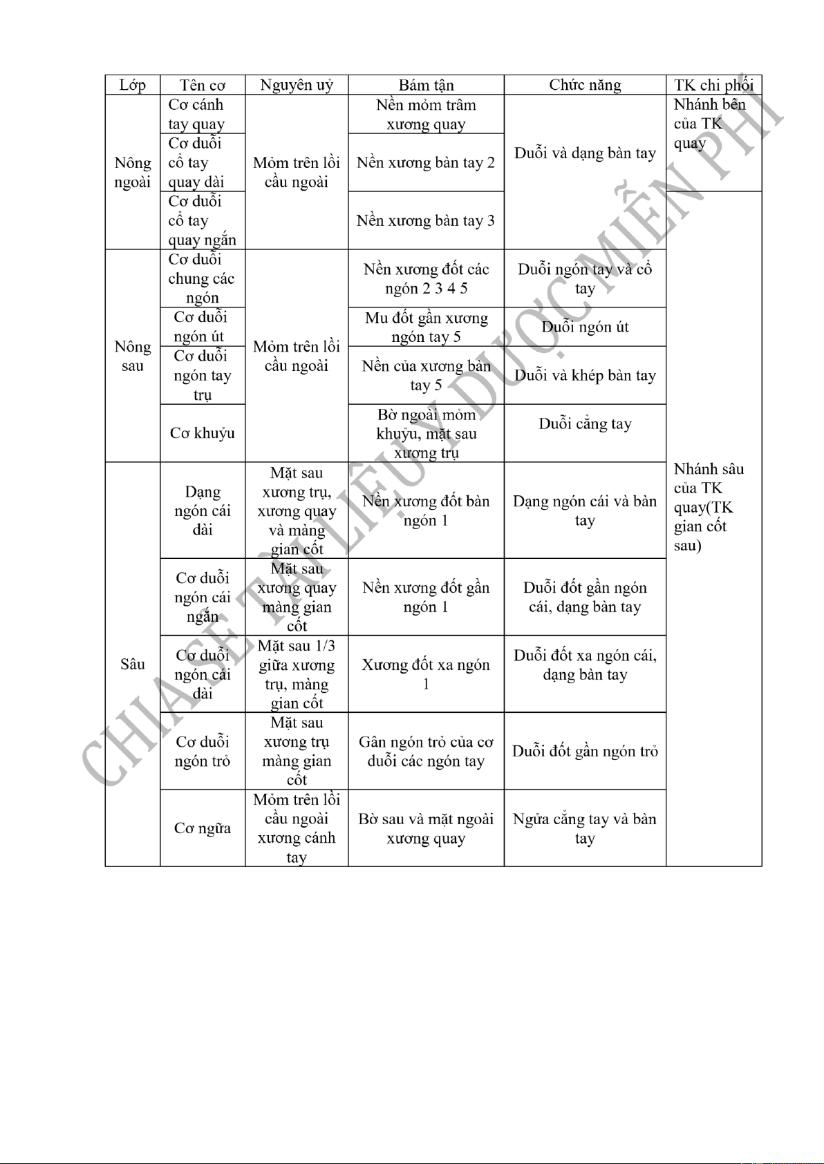 tay quay( cơ tùy hành của đm quay). Phía trong đm liên hệ với cơ sấp tròn ở 1/3