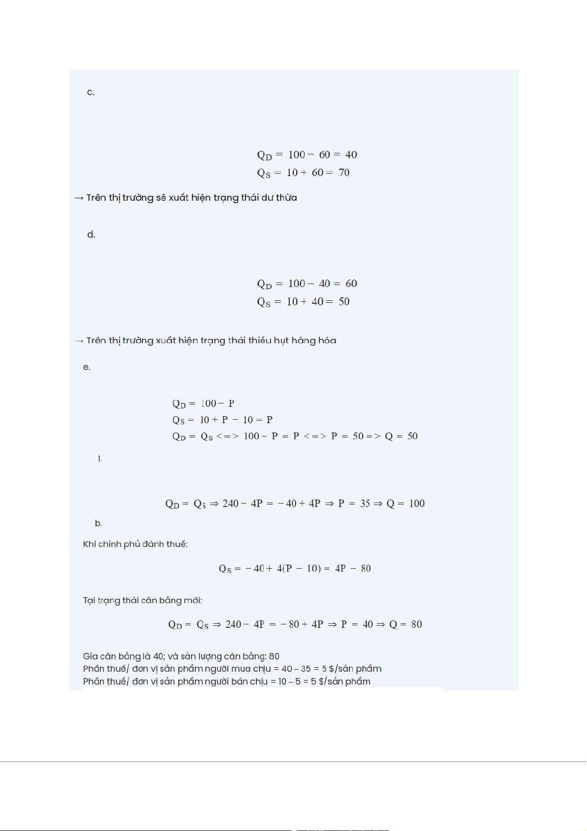 Kết luận: P↑, Sự thay đổi của Q phụ thuộc vào mức độ thay đổi của cung và cầu Bài tập tính toán