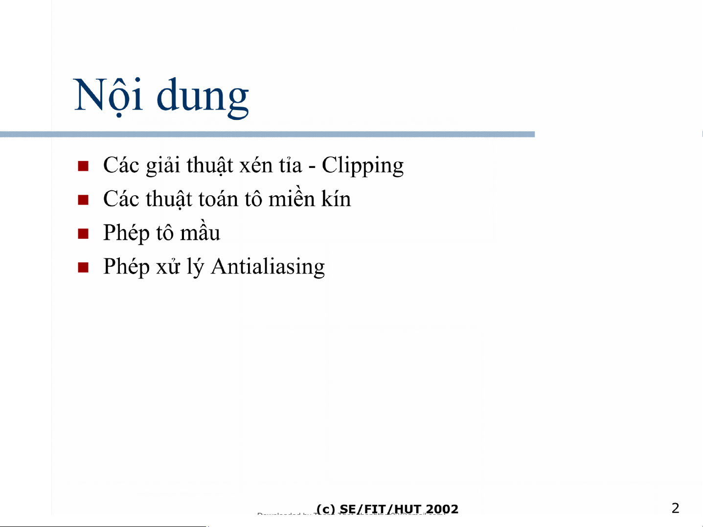 lớn nằm ngoài cửa sổ hiển thị. (c) SE/FIT/HUT 2002 3 Clipping đoạn thẳng