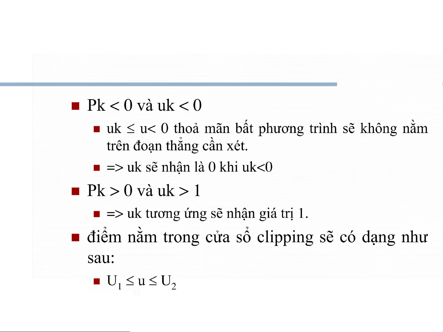 b)Nếu qk >= 0 thì bất phương trình luôn thoả mãn. cạnh k. Nicholl-Lee-Nicholl clipping